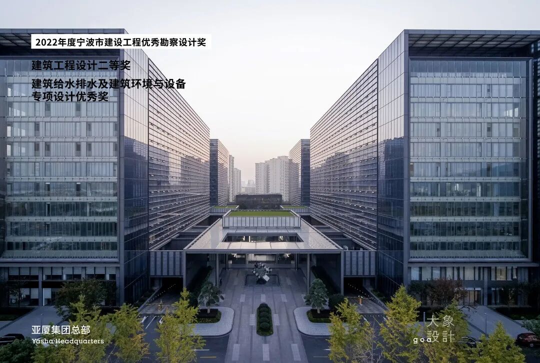 「亚厦集团总部」获2022年度宁波市建设工程优秀勘察设计奖建筑工程设计二等奖、建筑给水排水及建筑环境与设备专项设计优秀奖;「莲花小镇二期·莲花颐和」获建筑工程设计二等奖。