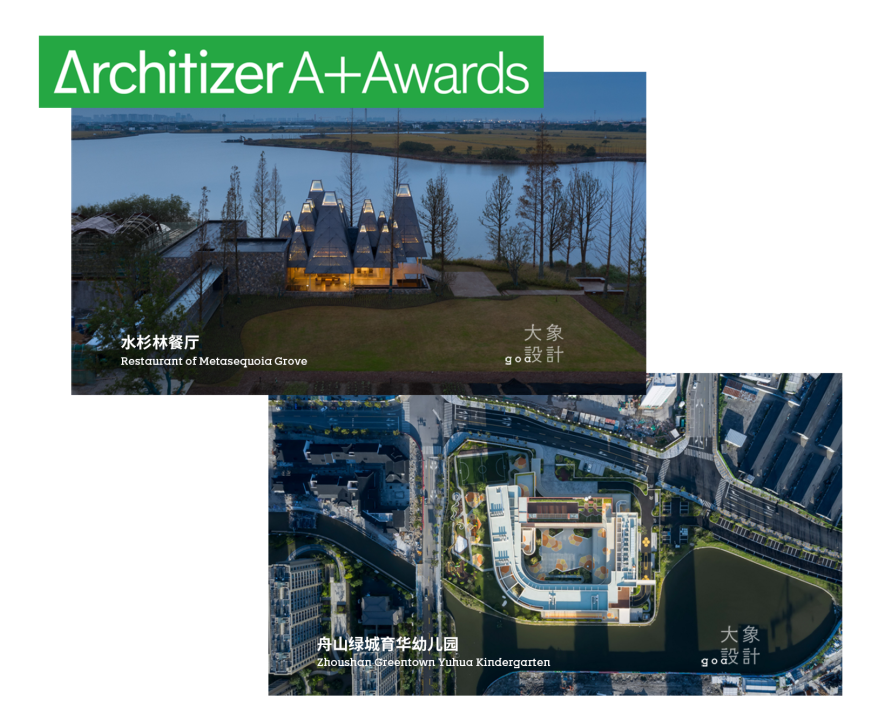 6月初,Architizer A+Awards公布了2022年度的获奖名单。「水杉林餐厅」同时赢得餐厅类别的专业评审奖(Jury Winner)和公众选择奖(Popular Choice Winner);「舟山绿城育华幼儿园」获幼儿园类别特别提名(Special Mention)。