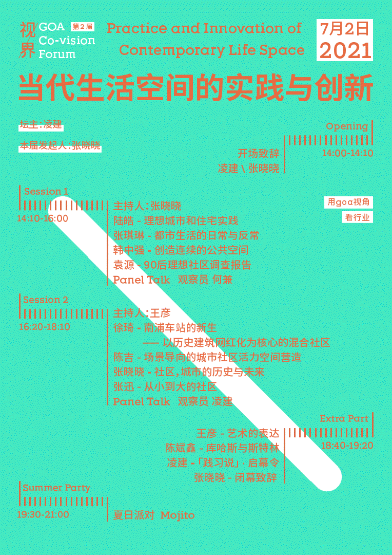 张迅 · 本届发起人:中国城市化进程进入新的阶段,建筑师实践的着眼点和抓手发生了变化;另一方面,新科技、新事物、新领域的兴起正在影响着建筑作为一门古老学科的方法论。所谓改变,是我们试图从中找到契机;与此同时,建筑实践的很多原则是相对稳态的,对人的生活的关注、对自然环境的亲近是不变的。在goa近期的实践中,我们在变与不变之间找寻平衡,也期待各位建筑师能以实践中的“变”与“不变”为线索,分享经验和见解。