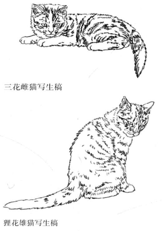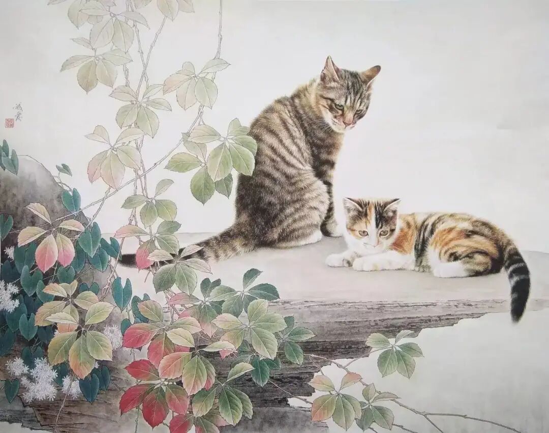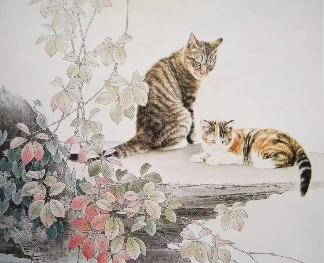 关于创作猫的绘画作品,在了解画面中猫和景物的结构关系的同时,要大量的写生,以掌握猫的各种动态、造型、特点和生活规律,掌握猫所处环境的树木、花草、石头、土坡等景物的造型和色彩。艺术源于生活,又高于生活,将生活中某个感人的情节加以提炼、取舍,再用环境加以巧妙地衬托组合,即形成了完整的画面结构。