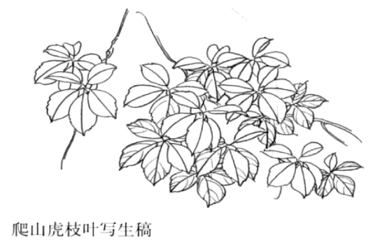给枝叶用分染、罩染的方法着色。深色部分多用胭脂墨,浅色部分由曙红、朱磦、鹅黄渐变,绿叶由花青墨、酞青蓝和藤黄配合变化。