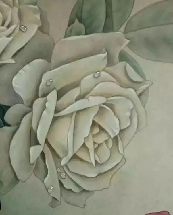 浅色花用墨青深入,后提白粉,画水珠,最后检查画面,调整好后落款完成。