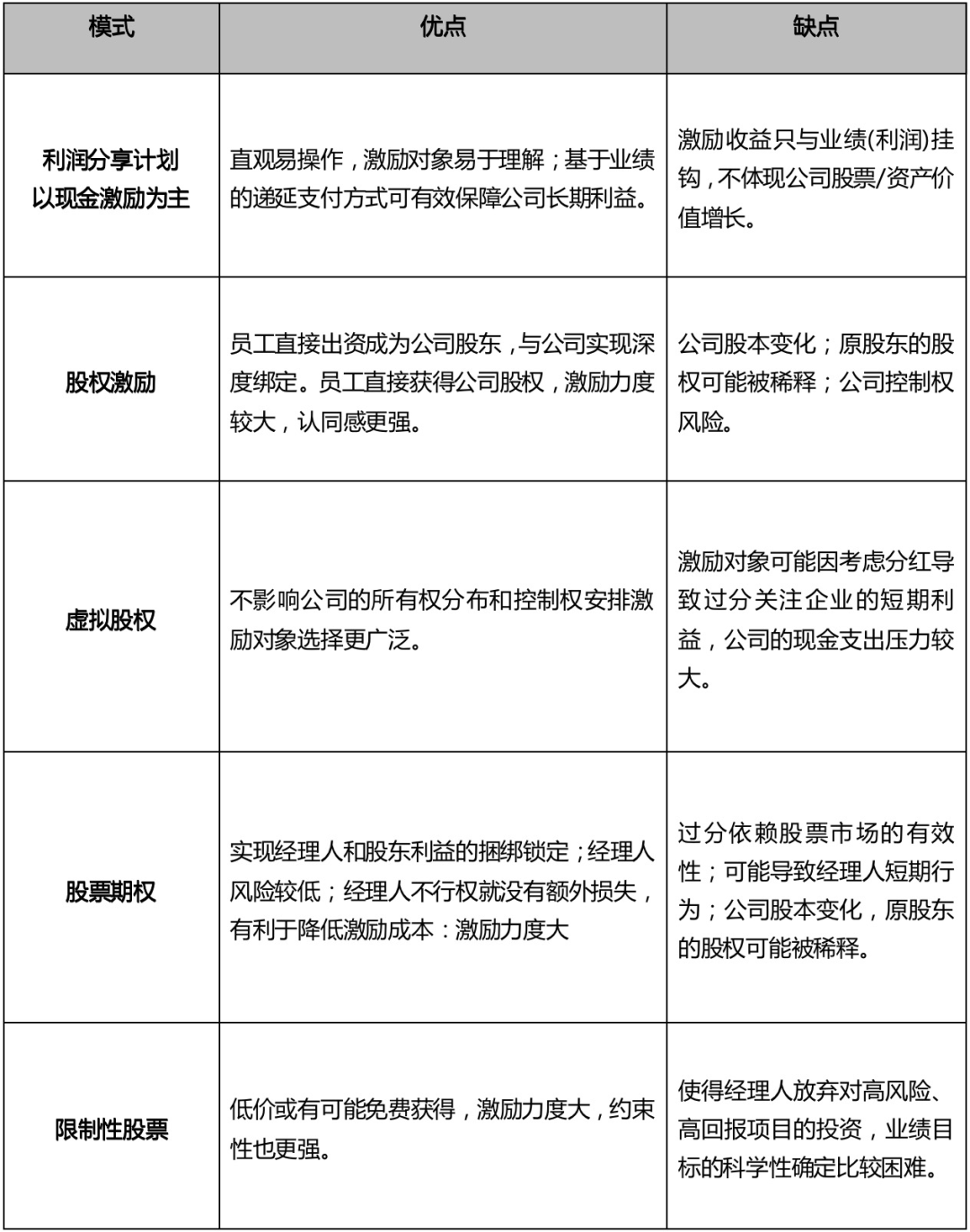 表1:不同激励模式的优缺点分析