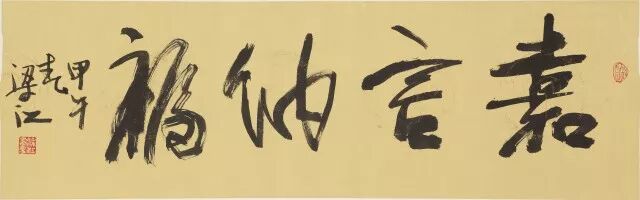 ▲《嘉言纳福》34cmx108cm 2014年(书法/梁江)