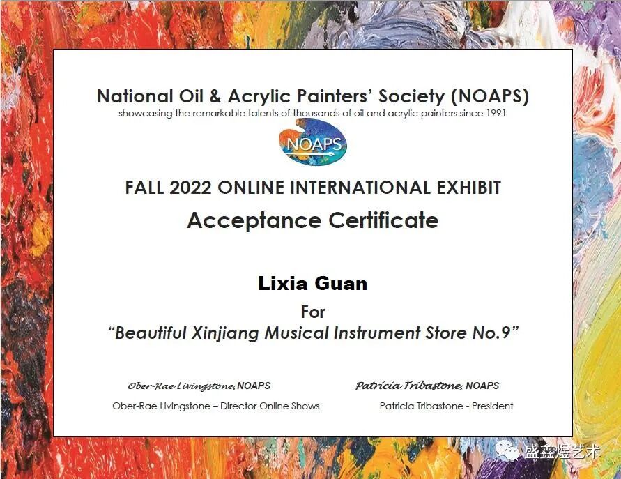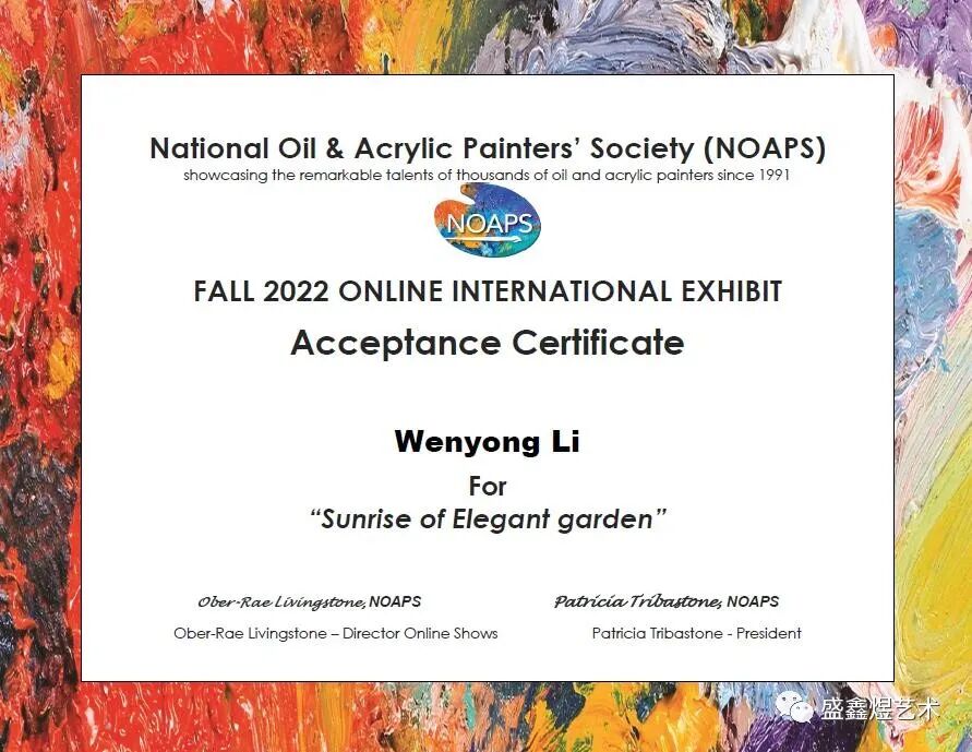 恭贺!美国油画丙烯画协会国际绘画大赛获奖&人选艺术家