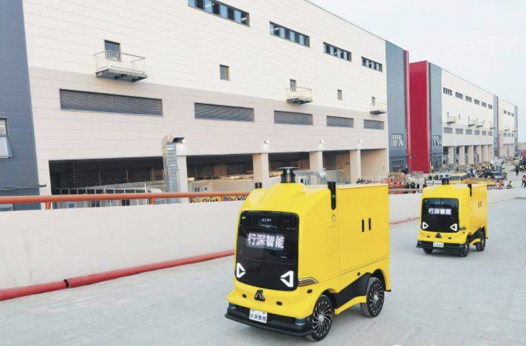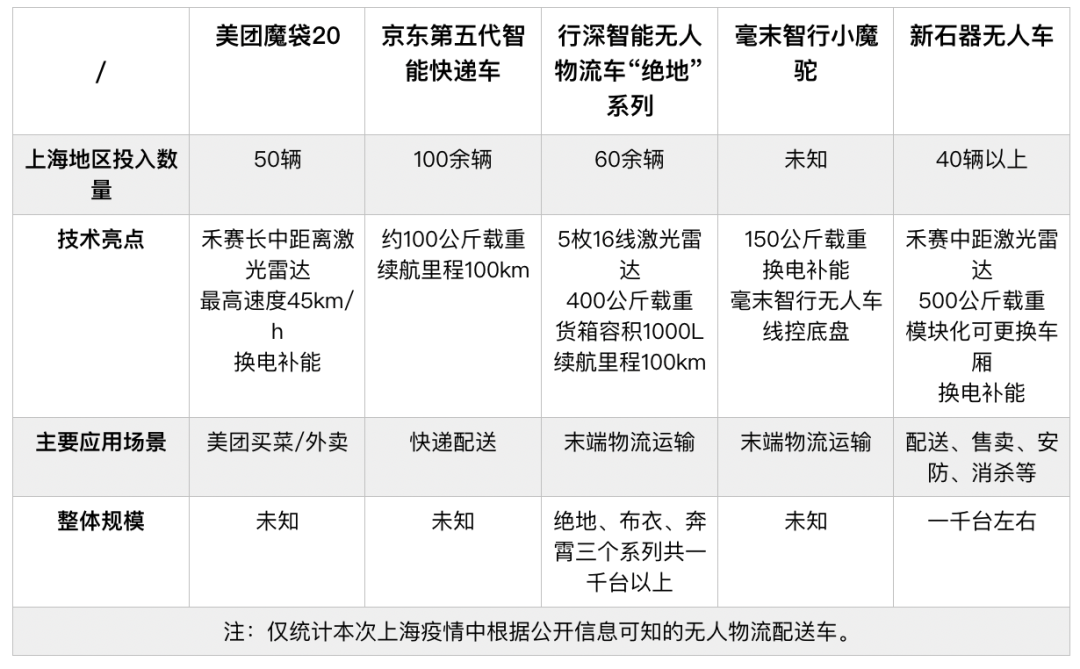 比如来自行深智能无人物流车,共有61台在上海方舱医院以及部分社区进行物资配送。