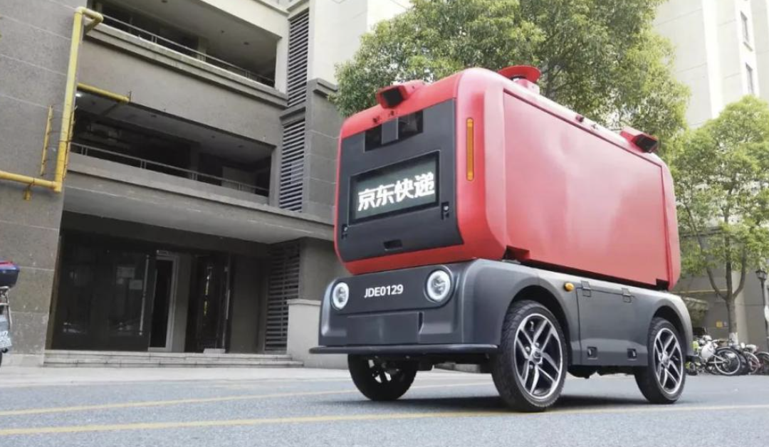 除了美团魔袋20,这次上海疫情还有京东的第五代智能快递车穿梭其中。