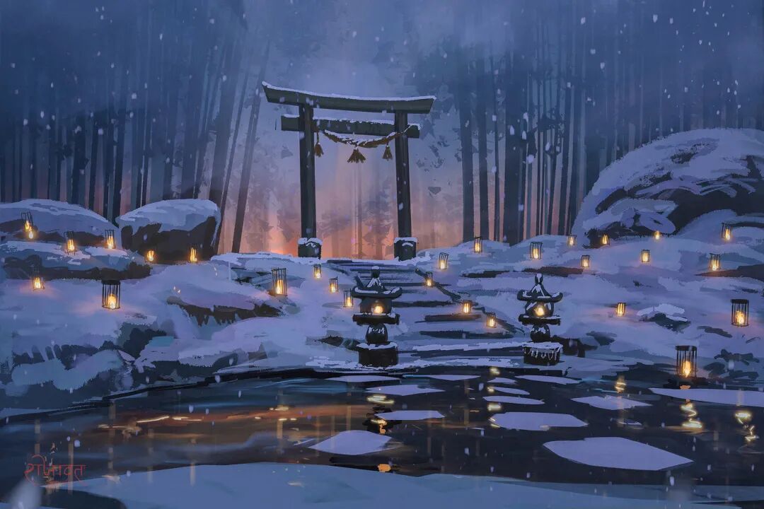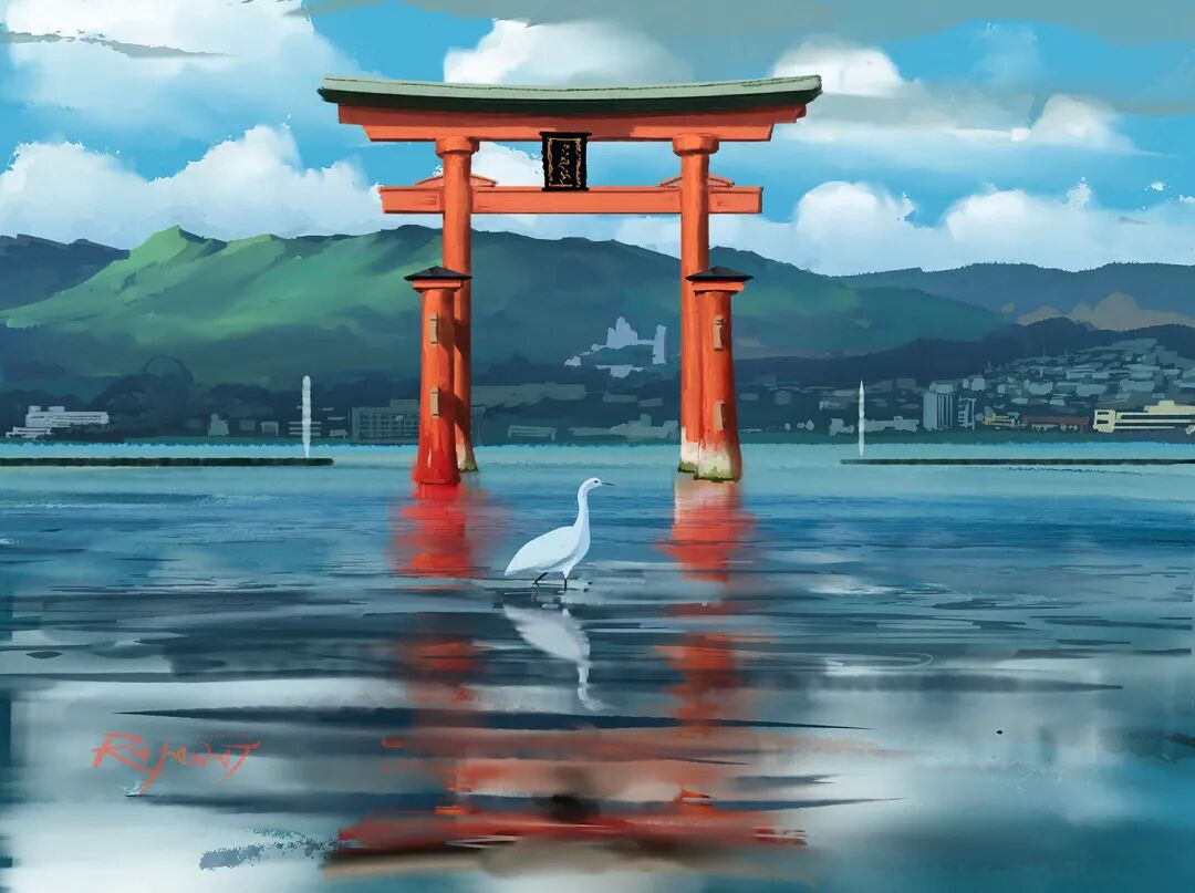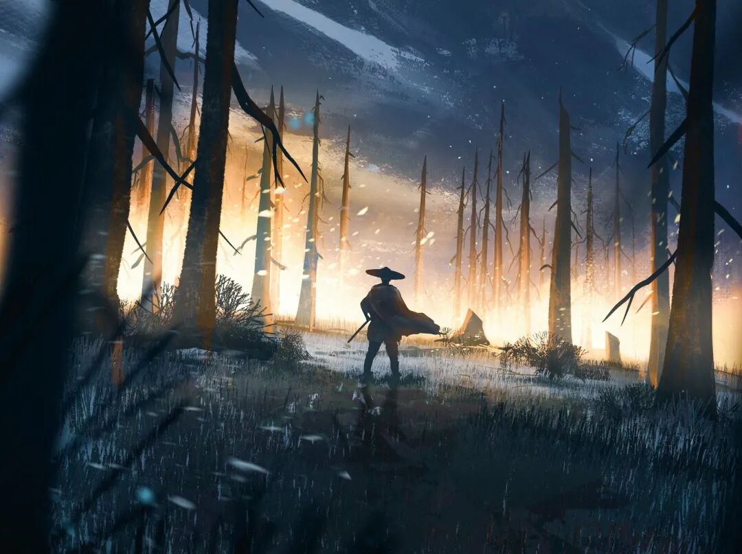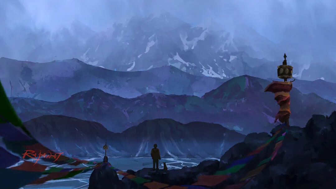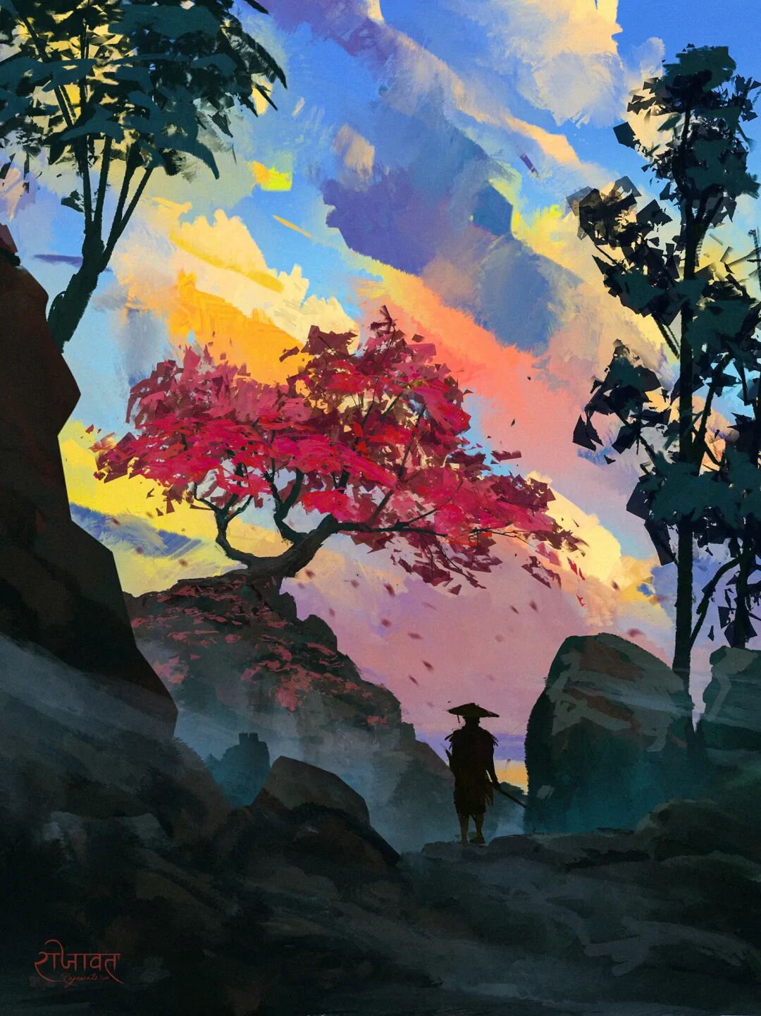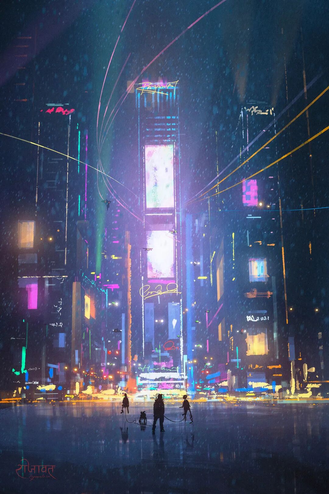 Surendra Rajawat擅长环境概念设计,对于光影和色彩的运用十分大胆,传达出一种梦幻浪漫气氛。冷暖色调的对比,以及背影的细节添加使得画面有种孤独的寂静感,构图富有想象力,仿佛身处梦境一般,整体氛围感非常强烈。