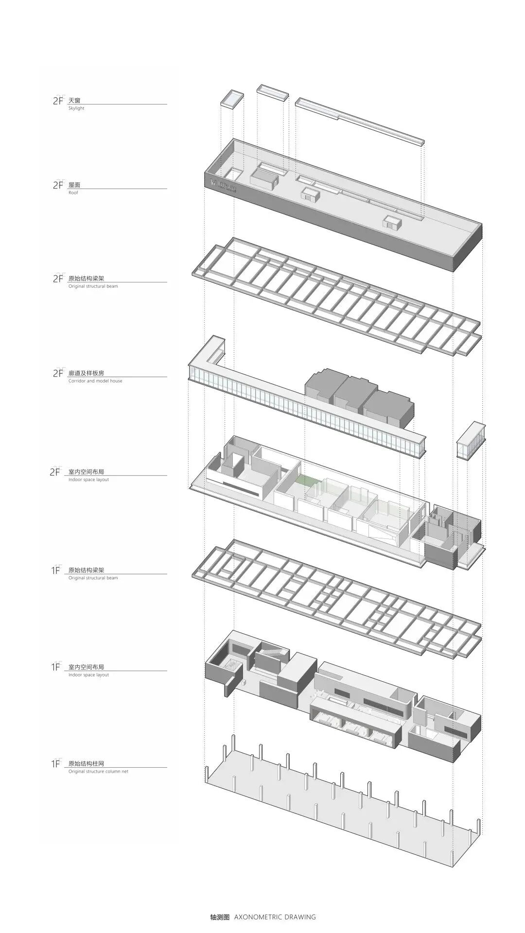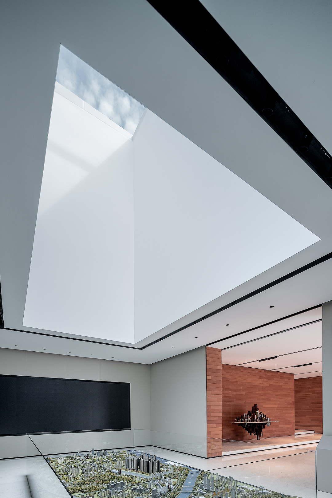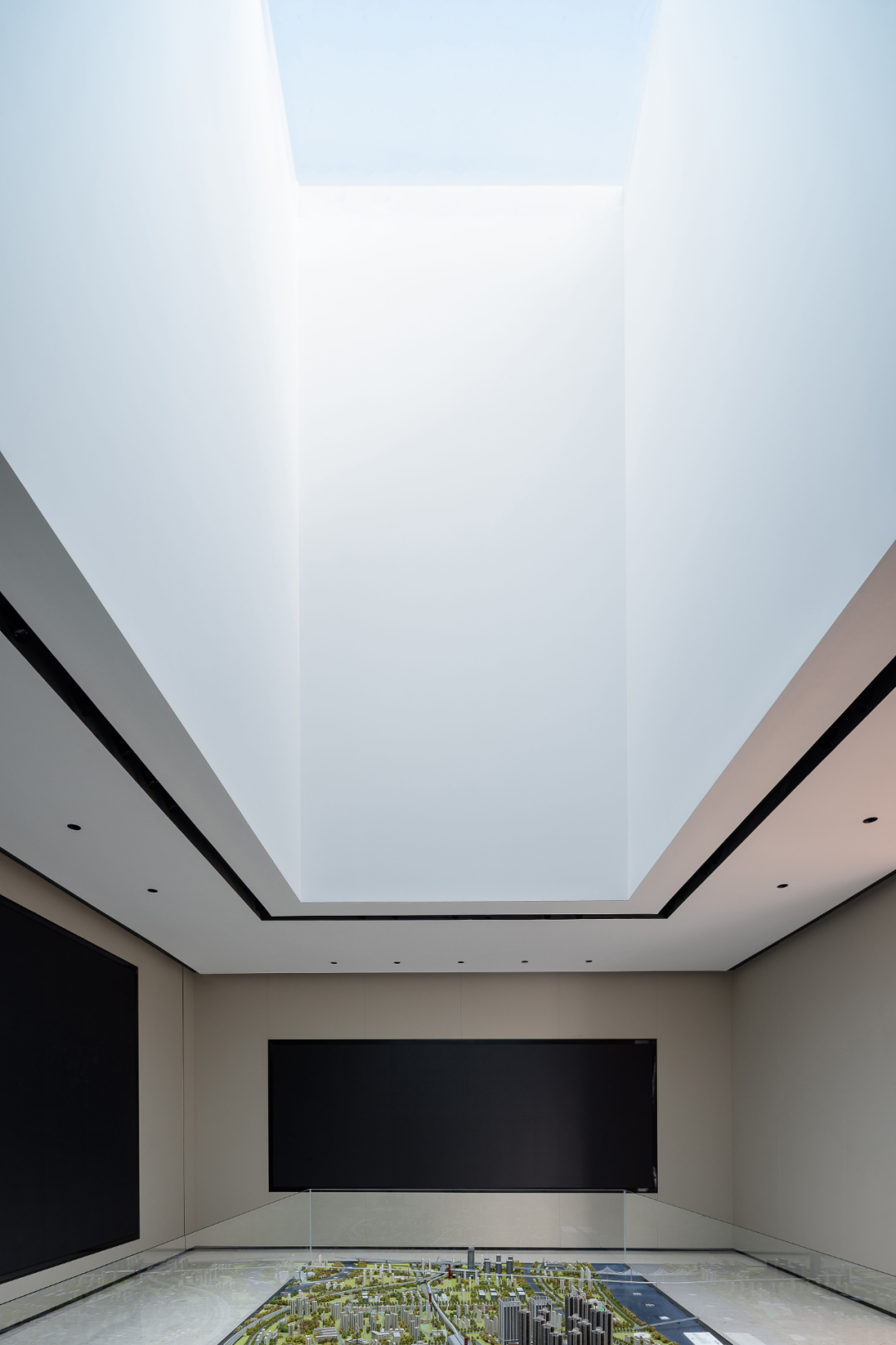 犹如一个关于城市的寓言。在一层,天光如诗歌般凝炼,将沙盘区的时空凝固,天井将其导向一种向上的姿态。