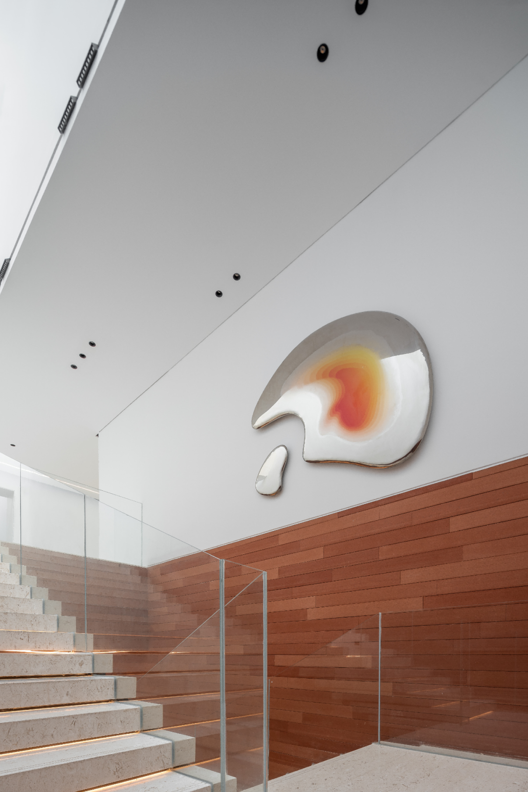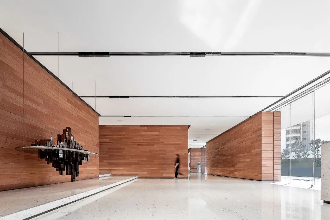 其本身的画廊功能在真实和想象中流动,反而模糊了画里画外的界限——从内向外尽览城市繁芜;从外向内成为框景的橱窗展现在沿街面,让整个建筑通透又神秘。