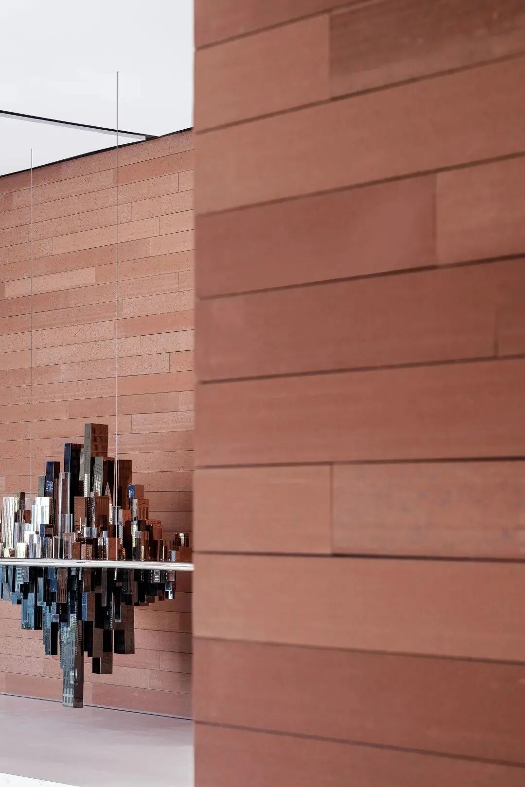 悬浮于建筑的游廊打开了时空和感官的交互。窗,承载着关于悬浮的构想,让整个红色陶板的外立面摆脱沉重。
