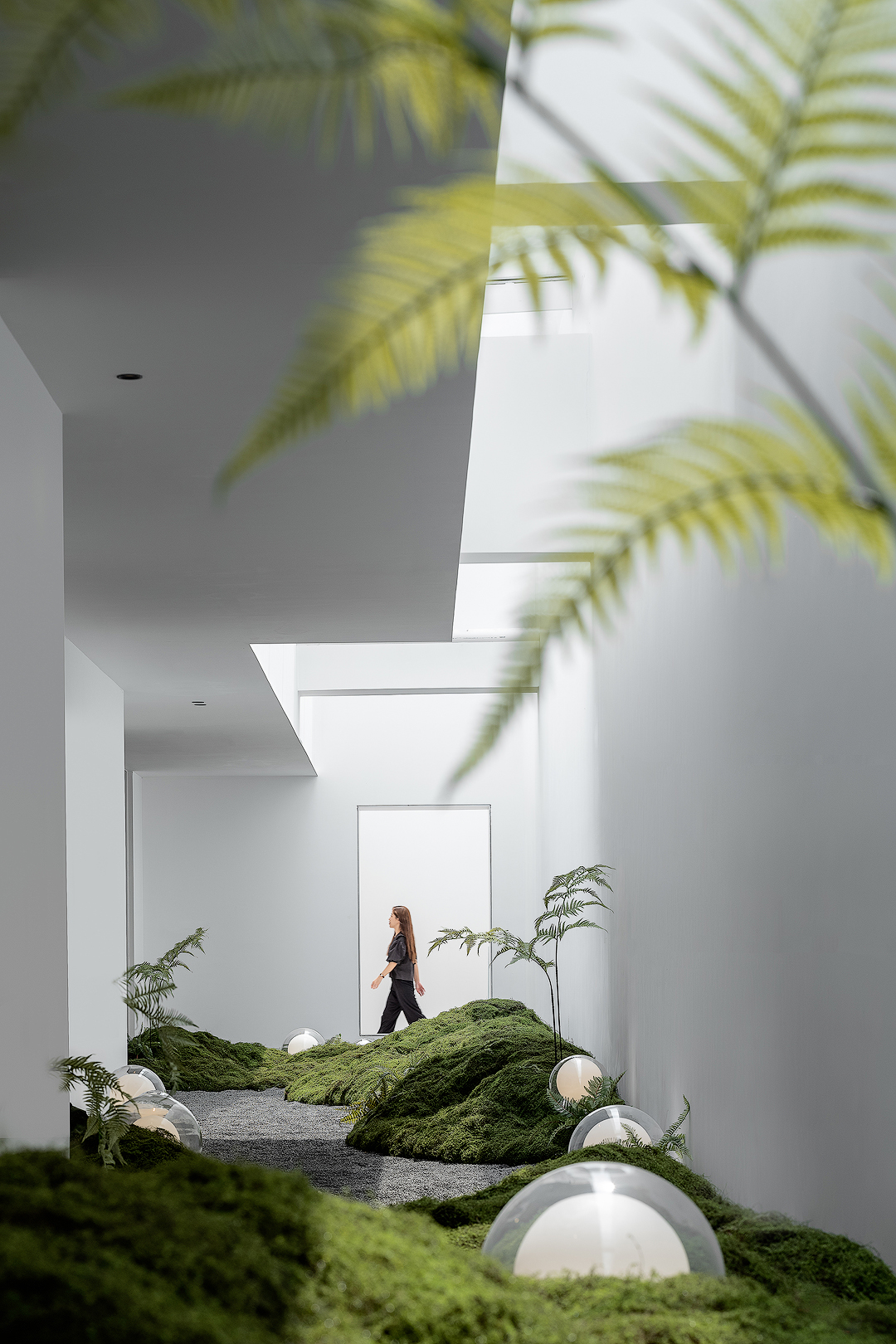 这条玻璃长廊同时也是进入样板间的必经之路,为游走于生活与艺术的体验赋予了一层哲学寓意。