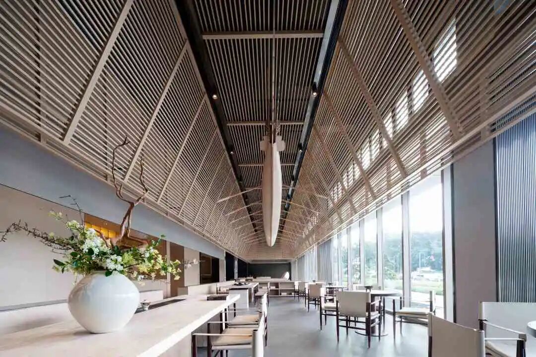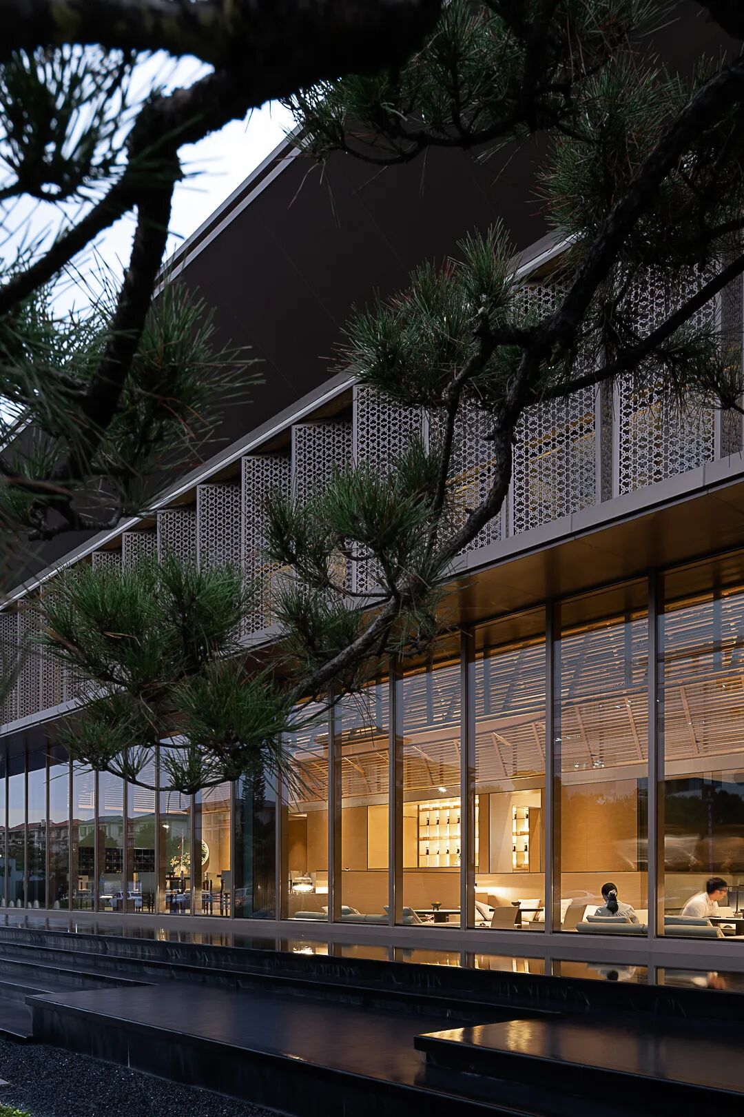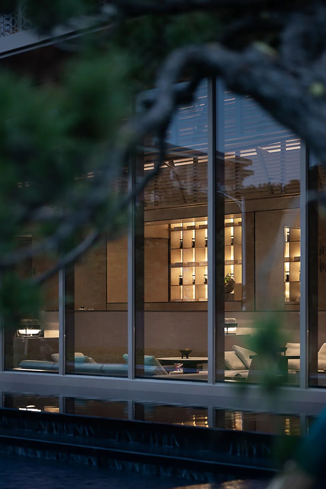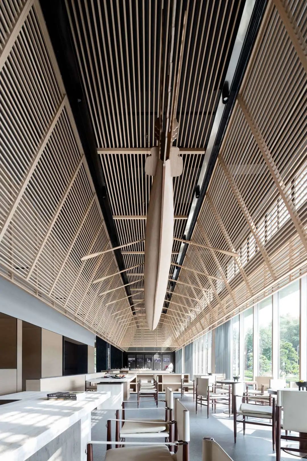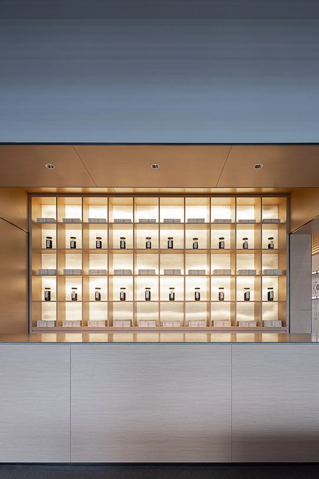 随行进轴线展现的是隐逸都市的茶室场景,整个空间是徐徐展开的状态,与自然的关系进一步延伸至材料层面。