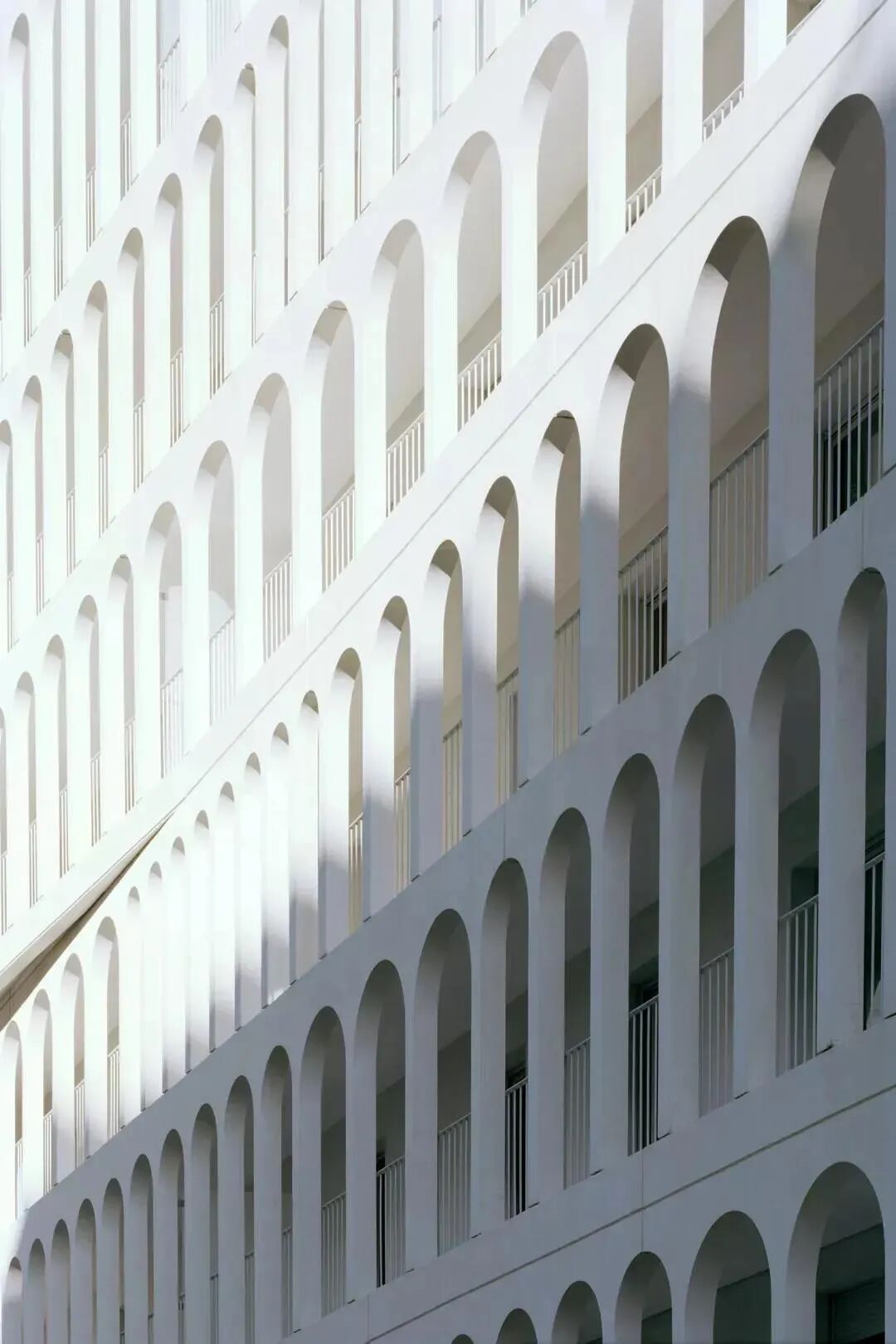 直角方正,尖锐的棱角,给人冰冷僵硬的视觉感受。如果利用拱形门或者拱形元素,用曲线和弧度弱化棱角的尖锐,柔化视觉。
