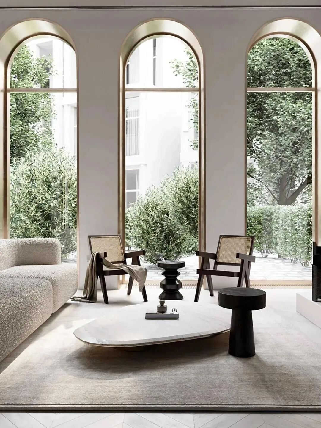 没有方方正正的线条,圆滑的线条,以及拱形的形态,给画面增添了一丝趣味感。弧线的线条往往都能带来一种独特的趣味,给人对这种设计,会多看两眼的心动。这样的设计可以给画面营造出低调但高级的视觉效果。