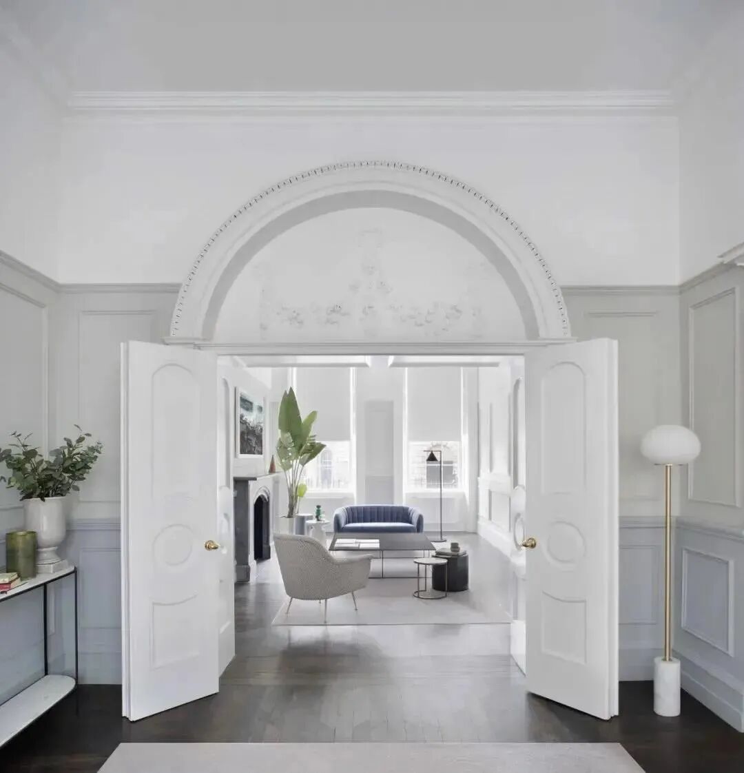 由于拱形门上部是弧线拱起的形状,给人向上拉伸挺拔的心理感受,也因此能够在视觉上提升画面空间高度。