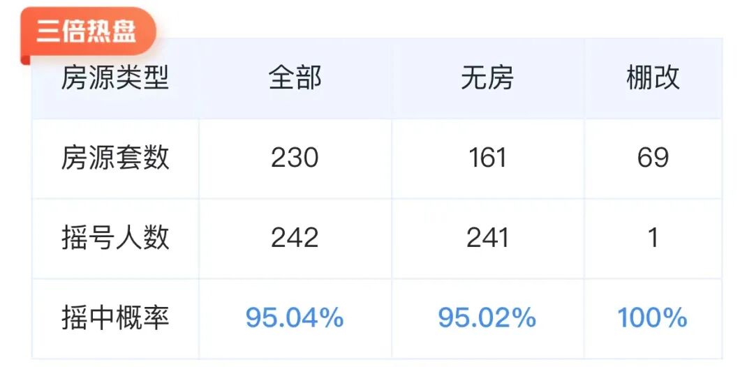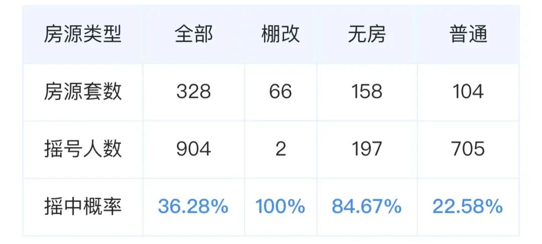 但就是这样的单价和总价,最终也吸引了904位购房者报名,差一点冲破熔断,这使得普通购房者也有了22.58%的摇中概率。