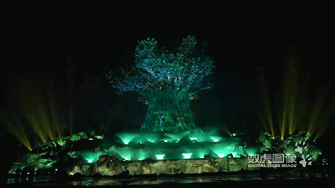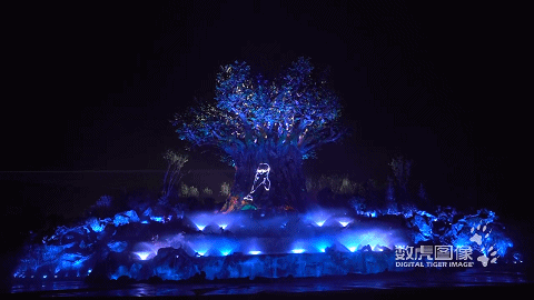 当夜幕降临,银基动物王国中央,一座恍如“天空之城”的奇幻花园岛屿坐落于此。花园中心一颗高45米、直径26米,无限蔓延向天际的参天巨树挺拔而立。这棵“生命之树”被光明之星点亮,大自然世界中的动物们被一一召唤,巨树变成5D的天然银幕,展开一场绮丽梦幻的灯光投影秀,上演一场神秘的动物王国大片。