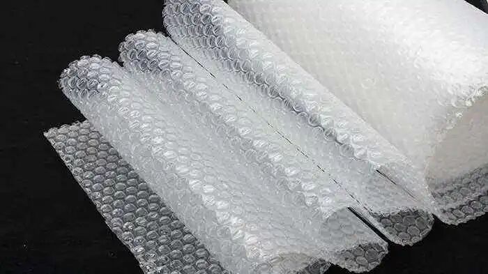 气泡膜使用高压低密度聚乙烯加工而成。气泡袋具有良好的减震性、体轻、透明度好、富有弹性、具有隔音、防震防磨损抗冲击性、无毒、无味、防潮、耐腐蚀。通过密封气囊达到防震缓冲作用,是一种成熟的包装材料。