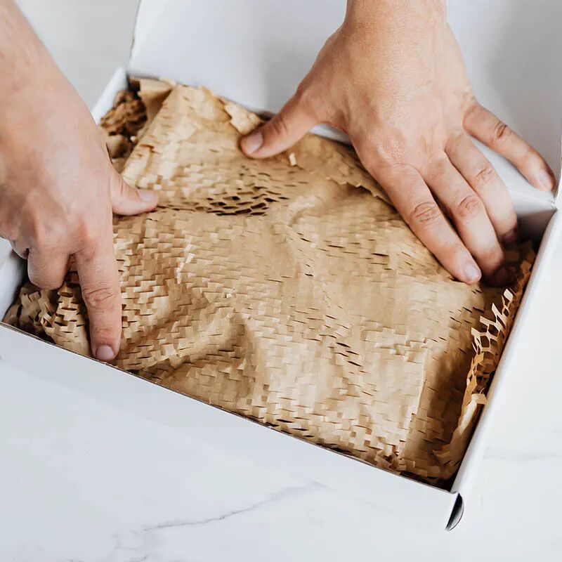 2、提供缓冲减震保护:蜂巢纸+麻绳的缓冲包装材料组合,使用FSC认证的进口长纤维原生纸,能承受高强度的拉力,具备不易断且能充分延展的特色,缓冲能力提升40-50%。