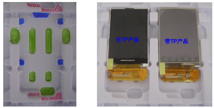 产品表面距吸塑盘承压面高度为 1.0~1.4mm 较合适。设计时尽可能考虑到有 TP 触摸屏项目,留出 TP 空间,包装时如果无 TP,可在扣手位置处增加一条 1.5~2mm 厚的海绵条。