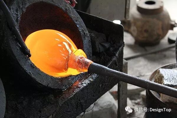 人工吹制时使用长约1.5m中空铁吹管,一端蘸取玻璃液(挑料),一端为吹嘴。挑料后在滚料板(碗)上滚匀、吹气,形成玻璃料泡,在模中吹成制品;也可无模自由吹制,最后从吹管上敲落。大型制品成型时,需反复挑料滚匀,以集取足够料量。