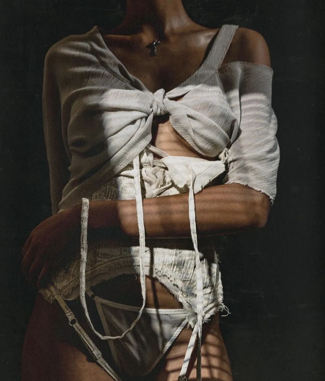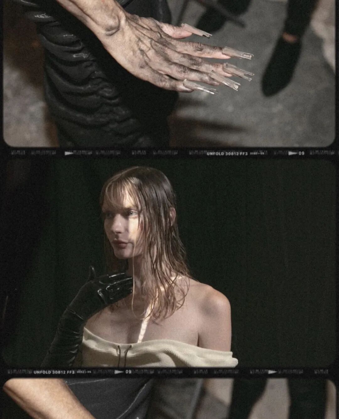 在这里,一个出彩的 Look 在反驳传统构造概念的同时,可以保留其垂坠感和形态之美,以及对于女性美的观察,也引出了其对中西部阳刚之美的温柔对抗。