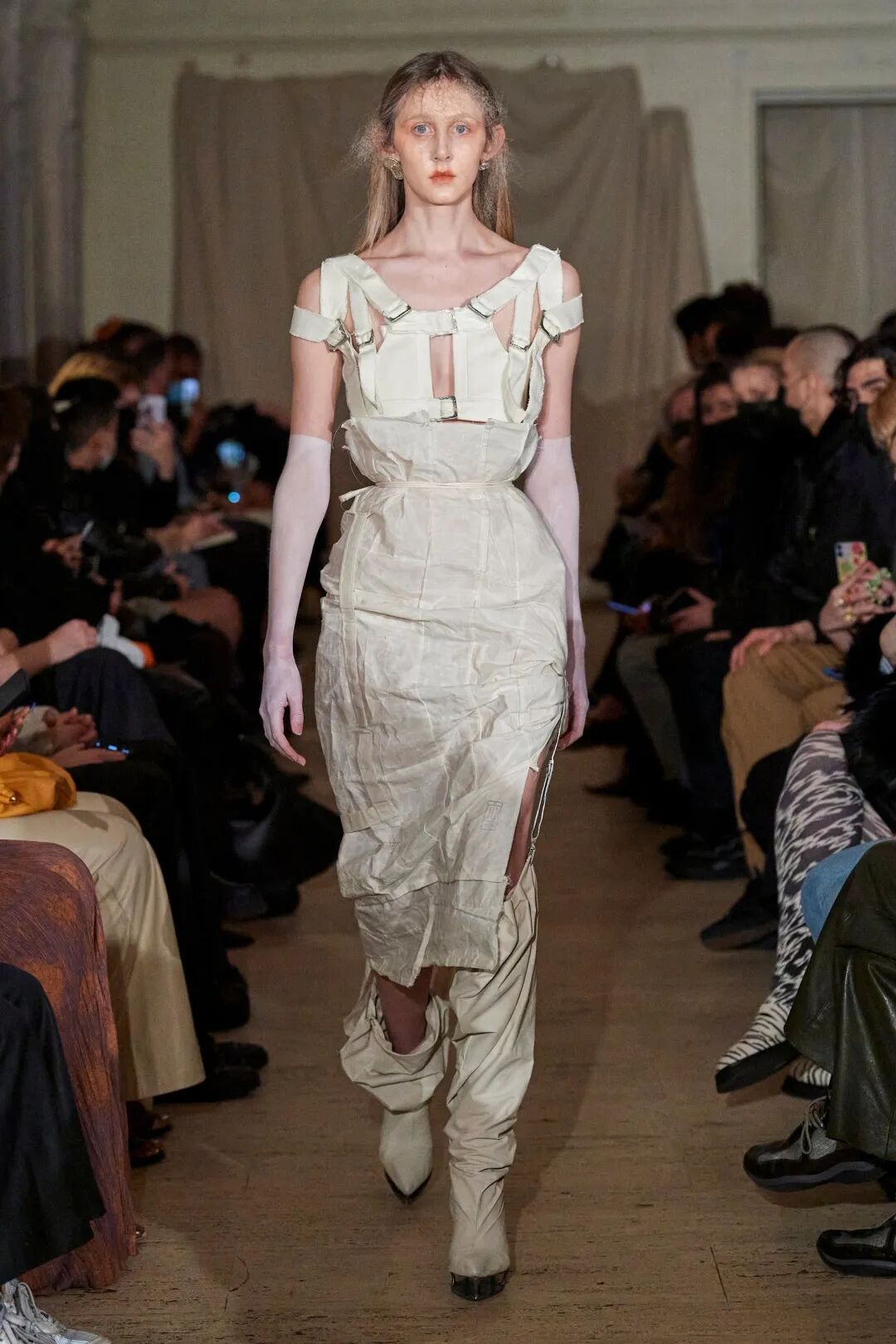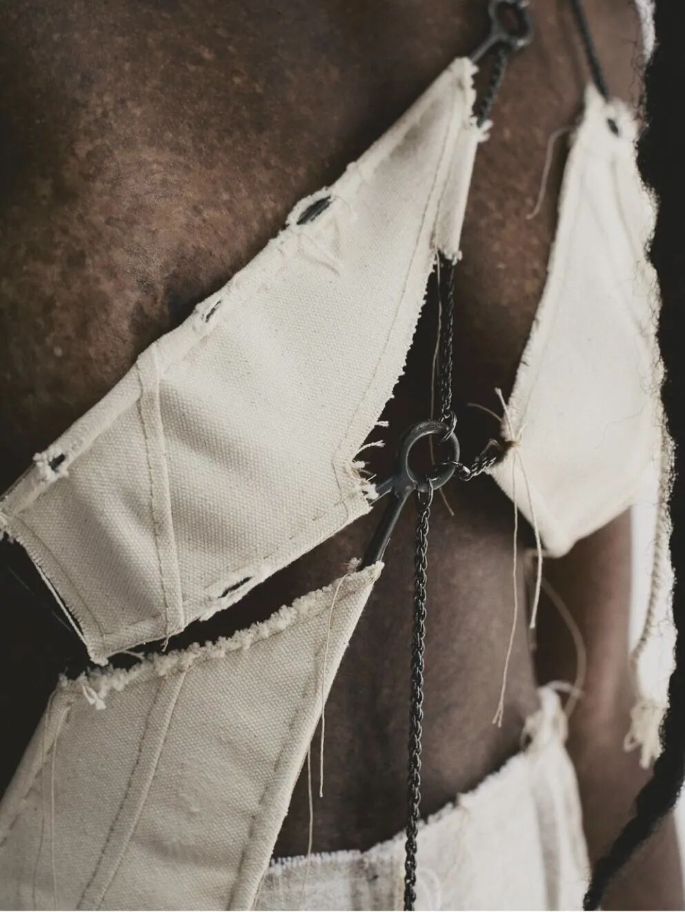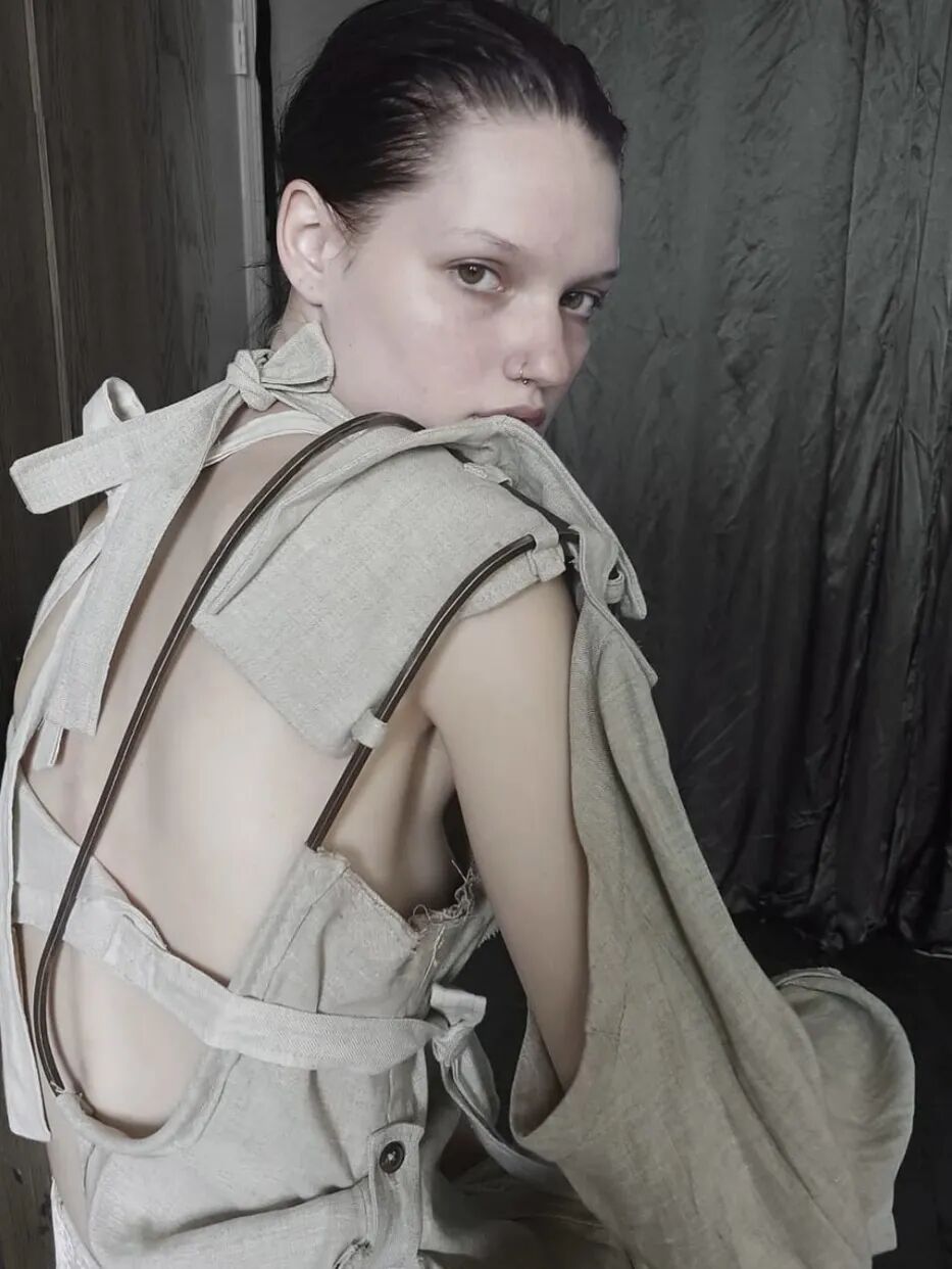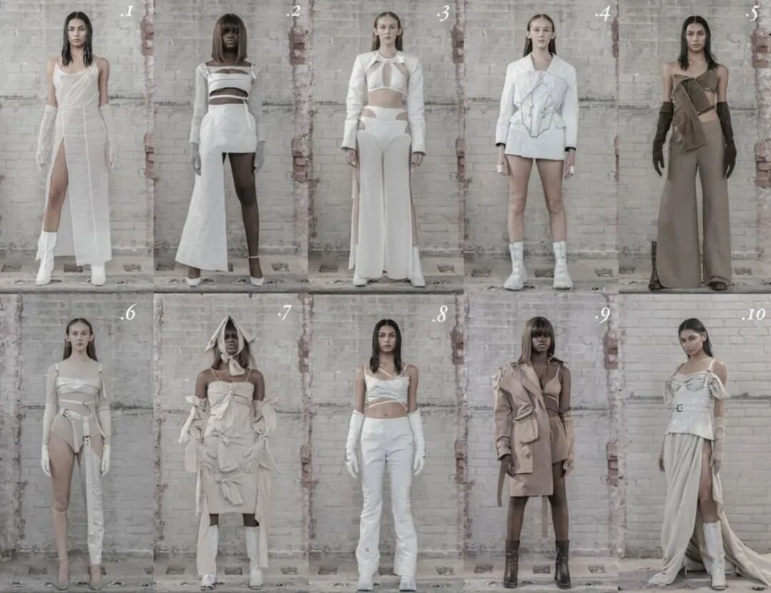Elena Velez在 Shin Gallery 展出系列名为 「Year 0」 的 20 套 Look,从「伟大文明的衰落」中汲取灵感,并专注于重新定义身体和雕塑之间的阶级关系,同时鼓励那些不是来自于传统艺术背景的艺术家们,可以平等民主的获取资源和认知度。