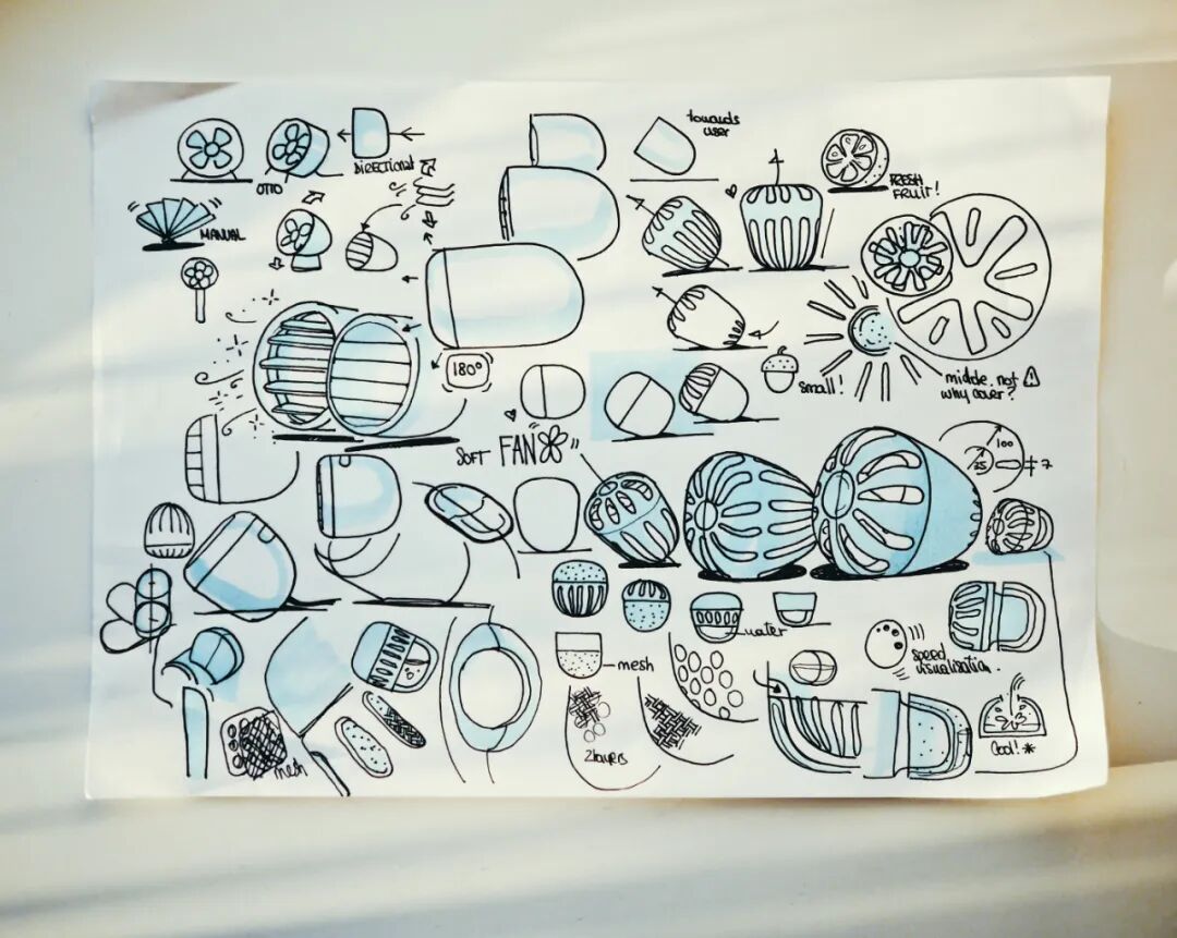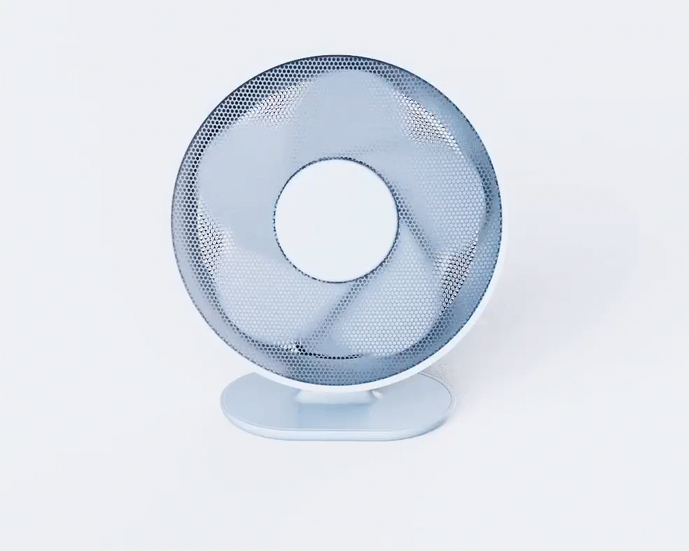 LeVentilo是一款功能简单的风扇,柔软且平易近人,扇形叶片让人想起在水中推动的桨。它们由一个阀杆支撑,通过分散支撑内芯和外壳,使不同元件之间连接。该产品的设计挑战在于如何使用可见组件,如叶片和纯功能性安全屏蔽元件。