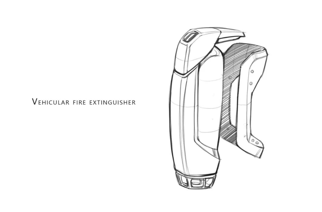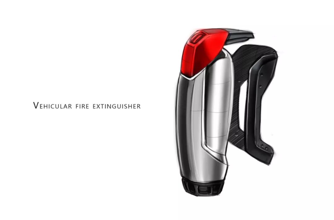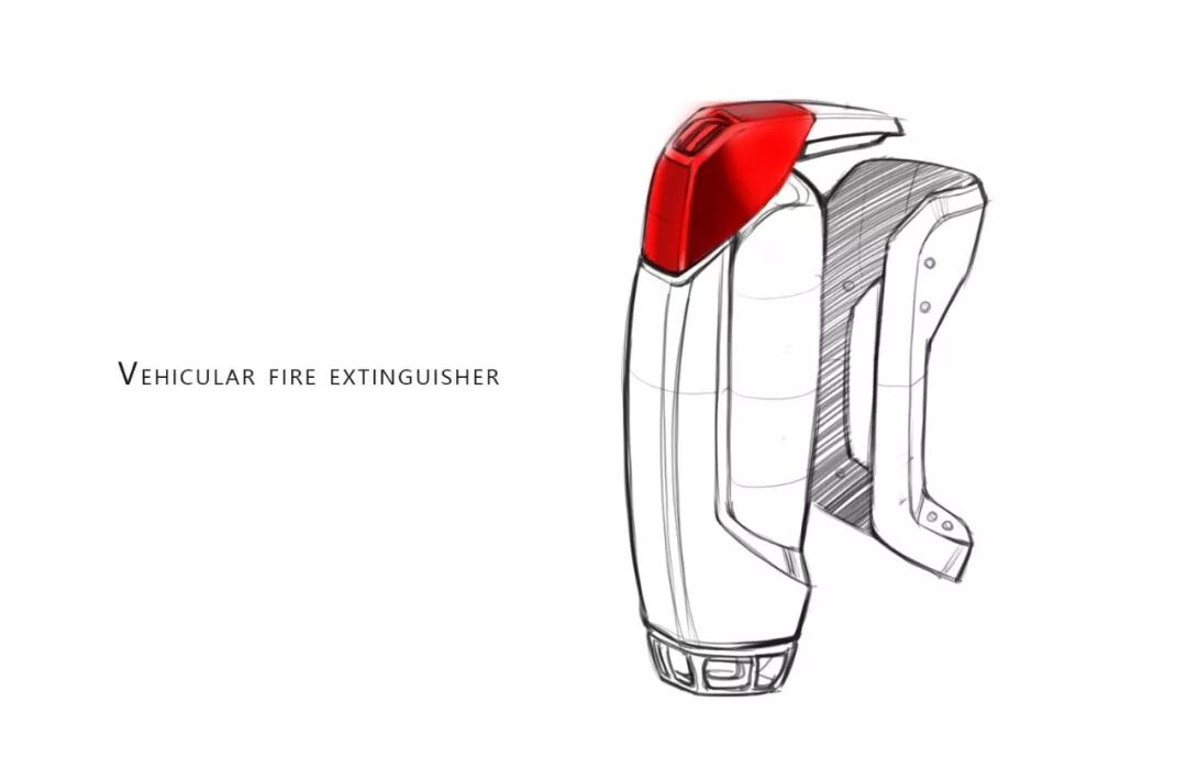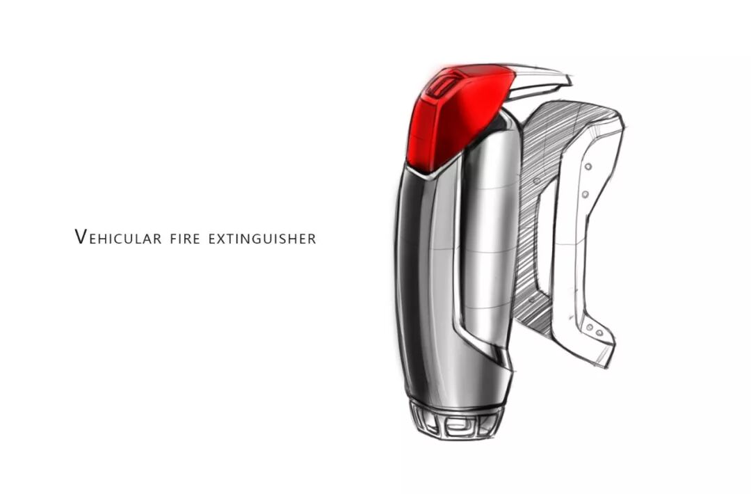 以下是数字手绘绘制的一款灭火器,这款产品就是一款用到警示色-红色的产品。