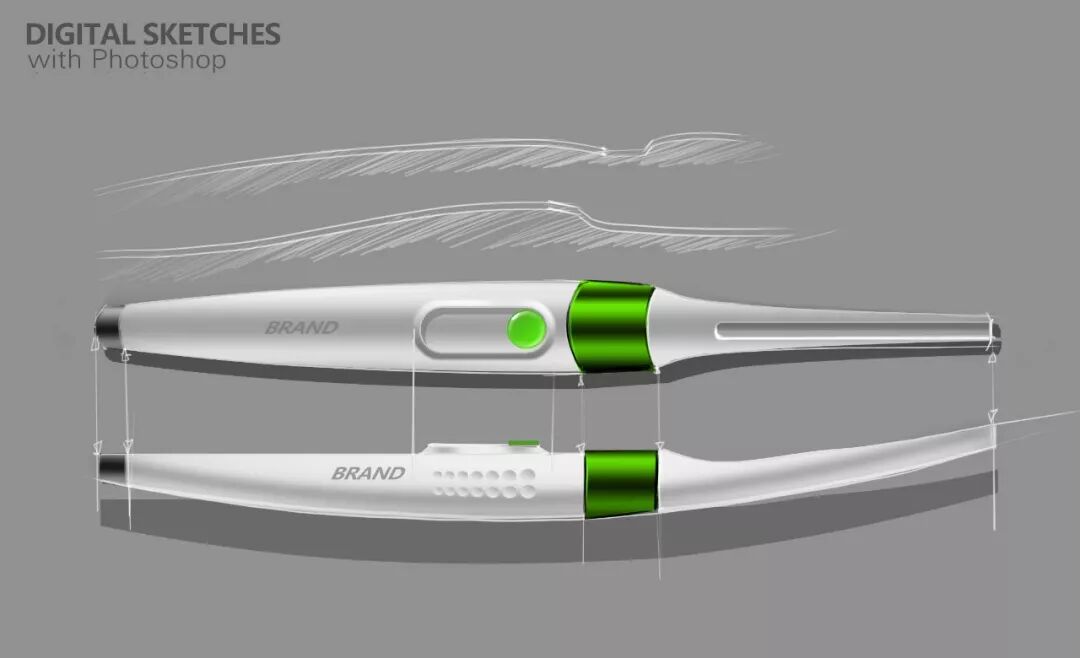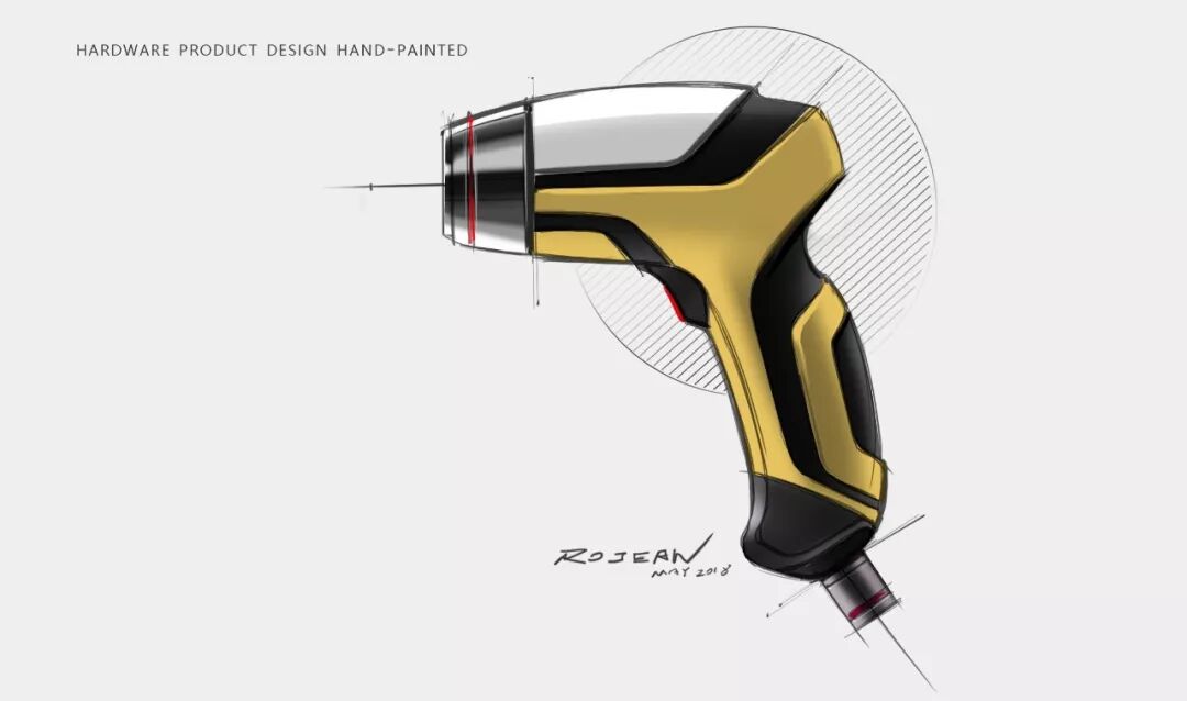 在绘制产品效果图时,经历过临摹阶段,前期可以进行产品的写生练习,然后可以凭自己印象,通过自己对色彩的感受,理解,分析,以及对市面上相同类型的产品色彩进行比照,通过对色彩在大脑中的记忆进行打散,重组,整理,归纳,分析色彩与色彩的搭配,前期思考的久一些,再去下笔绘制。如果一开始不熟练,可以采用写生与凭印象绘制相叠加交替进行的方法。这样既可以提高你的产品色彩观察分析能力,对产品上不同色调的调配能力,又可以提升整合产品本身色彩与整体画面色调的把握能力与表达产品效果图的上色能力。