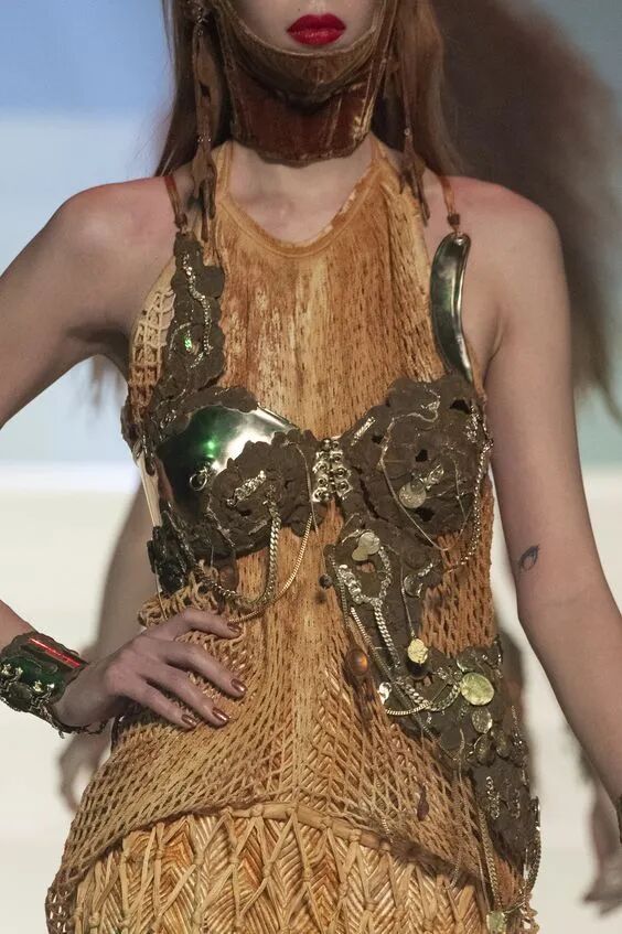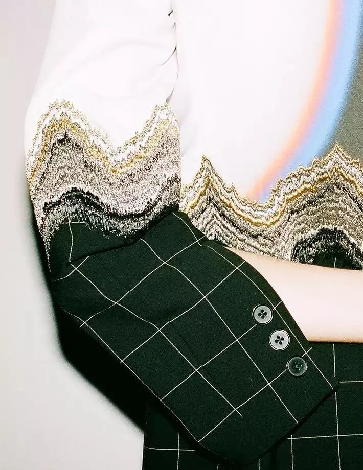 而这些“原材料”都是从灵感图中提取出来的有典型意义的,或者有形式美感的设计。设计师通过不拘一格的艺术手法,让原本单调的衣服富有层次感。