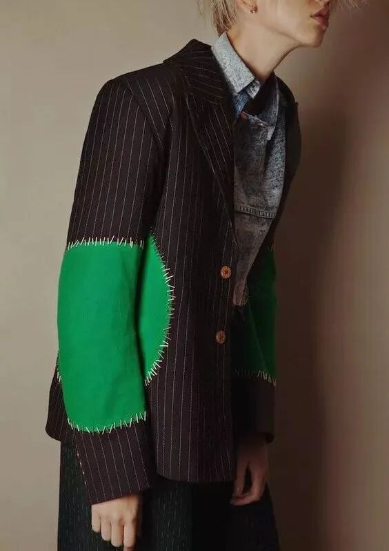 拼接设计不仅满足人们对现有服装改进的需求,还可以在现有服装面料、色彩、款式、廓形、工艺上大胆创新,形成独特的视觉效果。