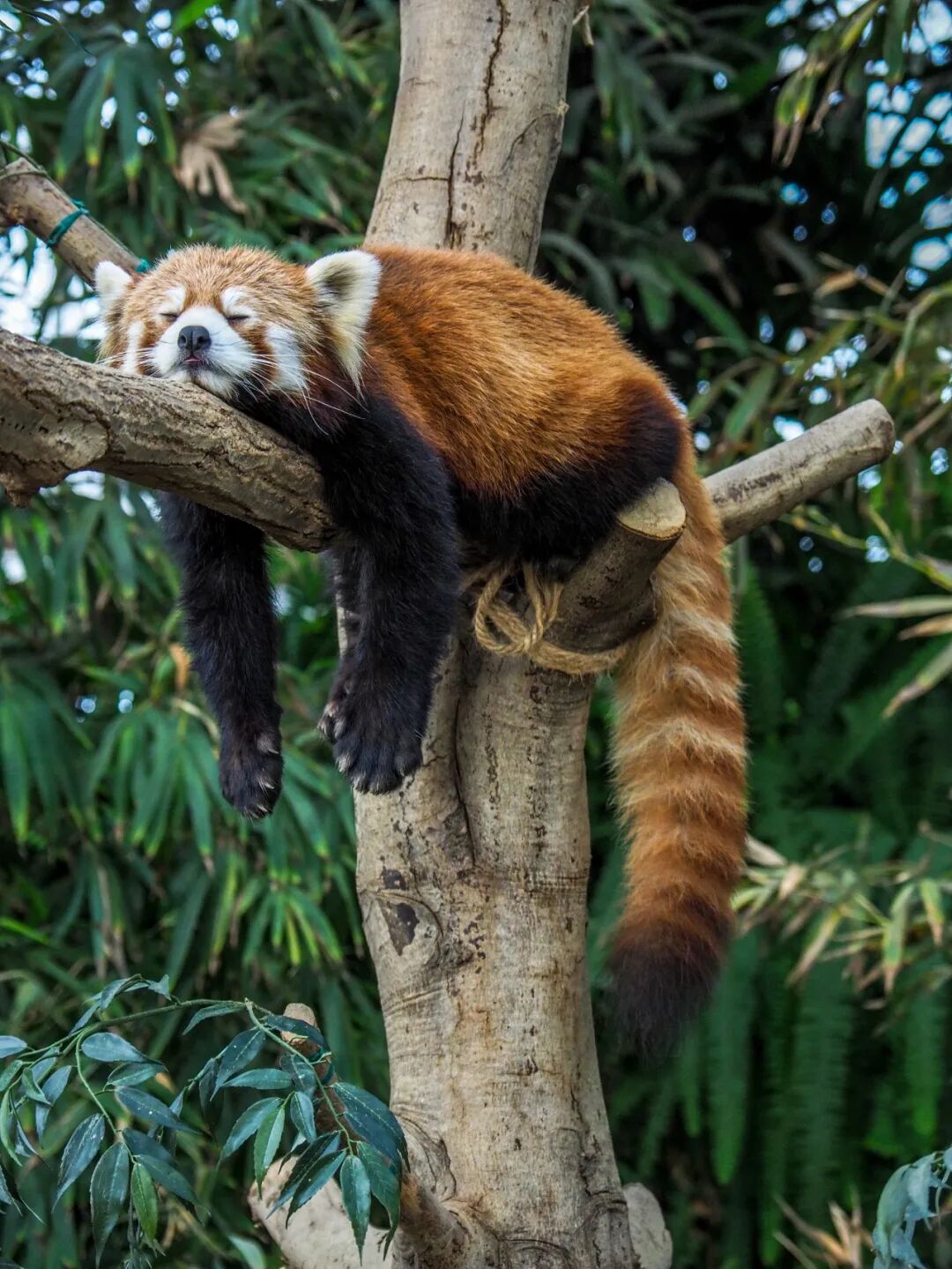 平常栖息于大的树洞或石洞和岩石缝中。早晚出来活动觅食,在夏季比较炎热的时候,小熊猫会瘫在树上睡觉,四肢悬空,宛如一只被生活压倒的社畜。而冷的时候,它们会蜷缩成一个球状来保暖。