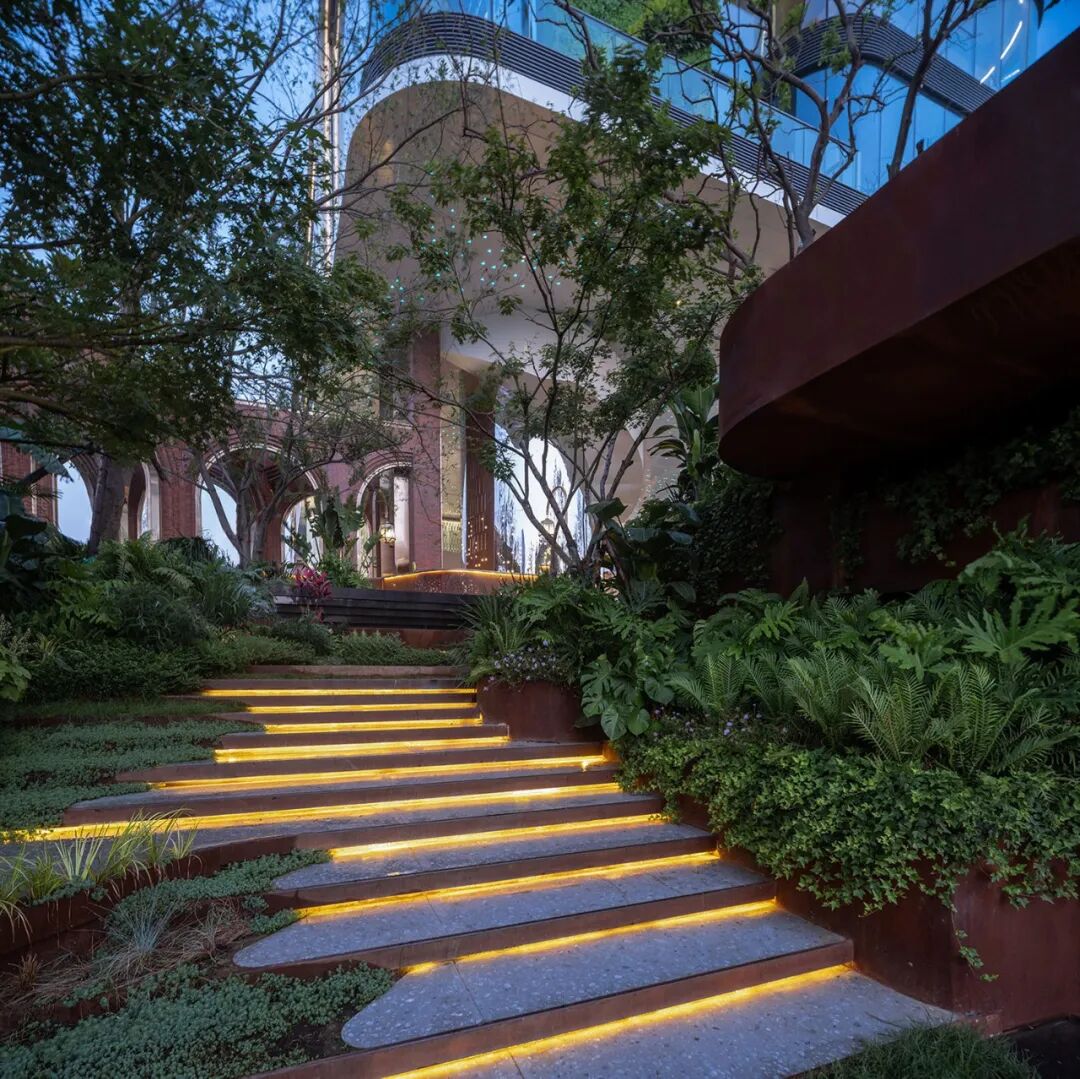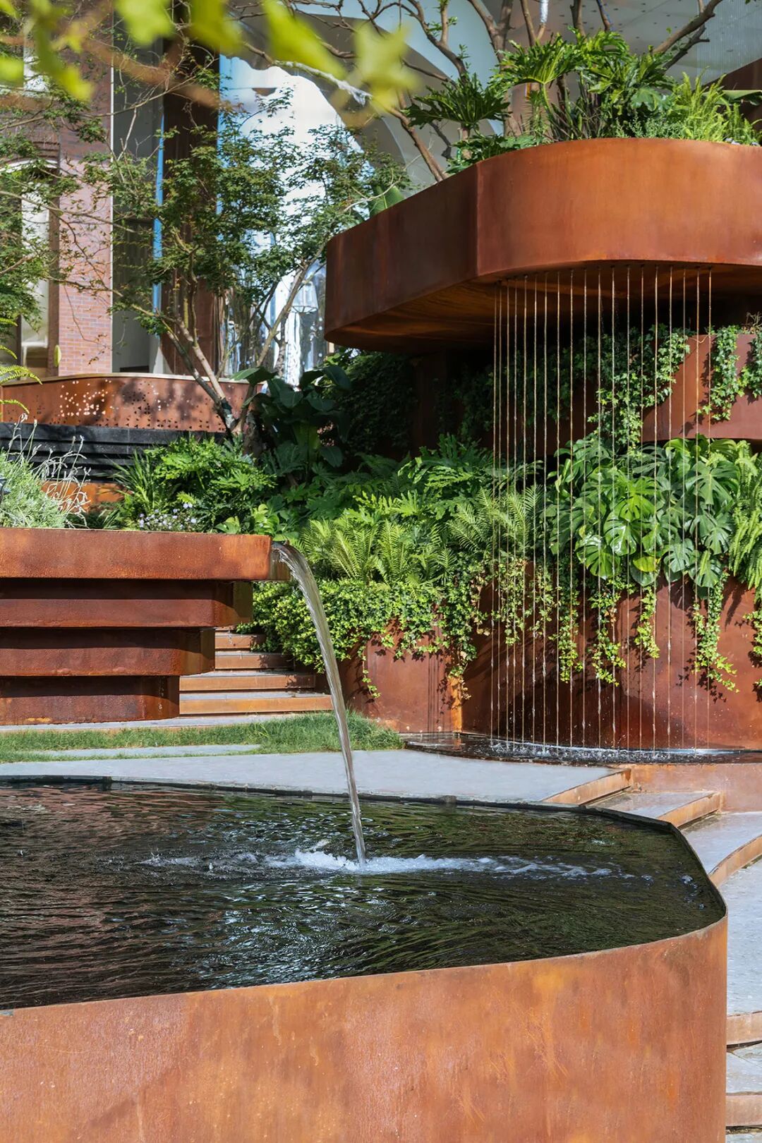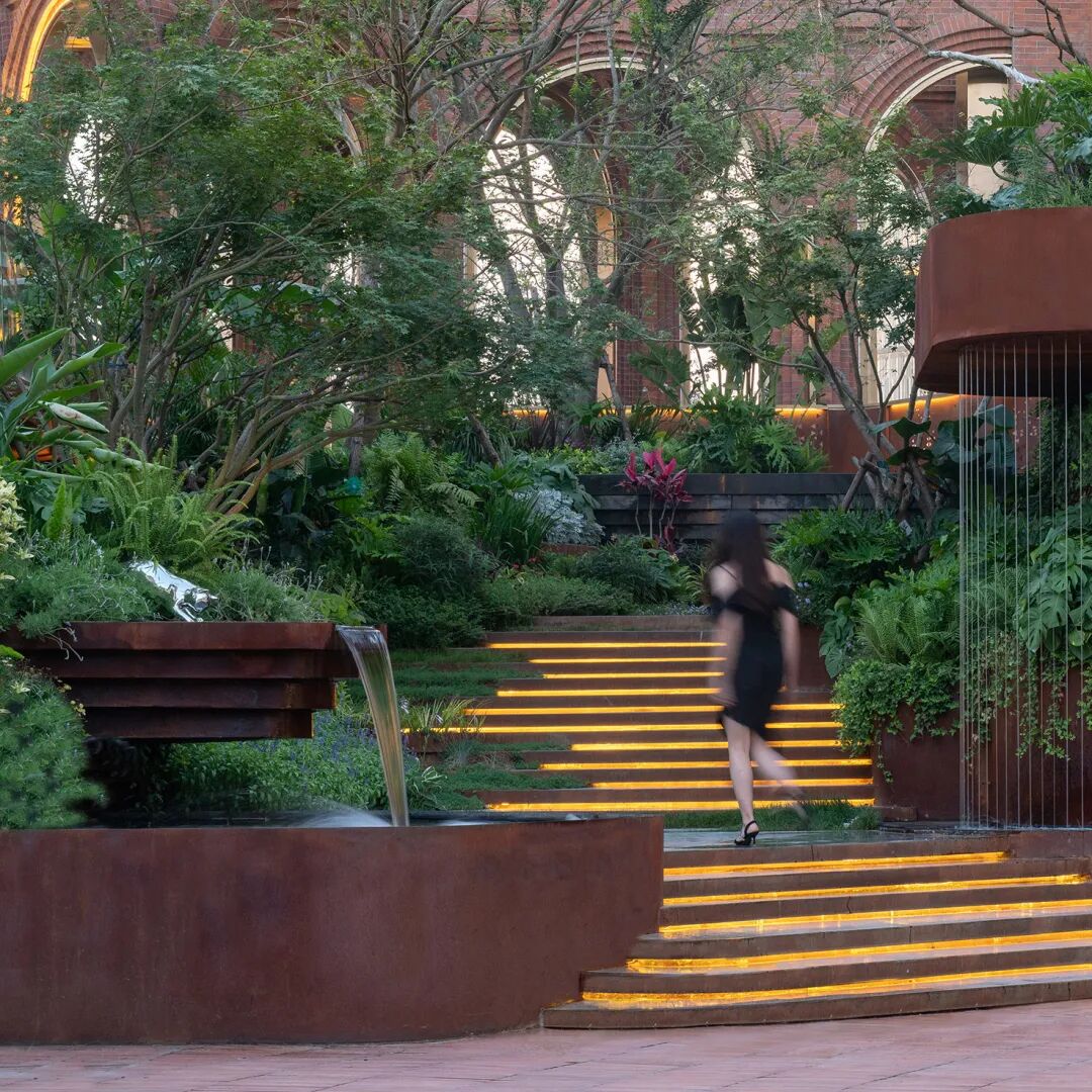 植物创新场景,雨林的奥秘掩映在热带花境中,自然的法则被诠释着...内庭空间通过高大的林荫乔木,以蕨类、春羽等大叶品种为主的下木植物 、溪流和雾森以及丰富的高差变化形成打造出独一无二的流线体验。