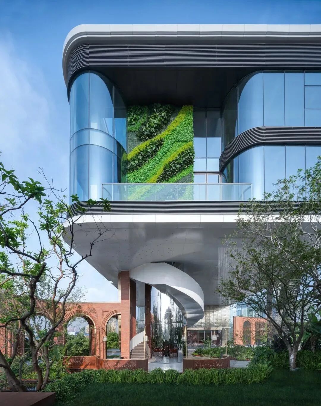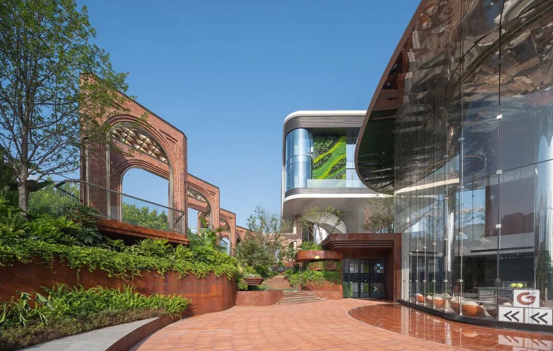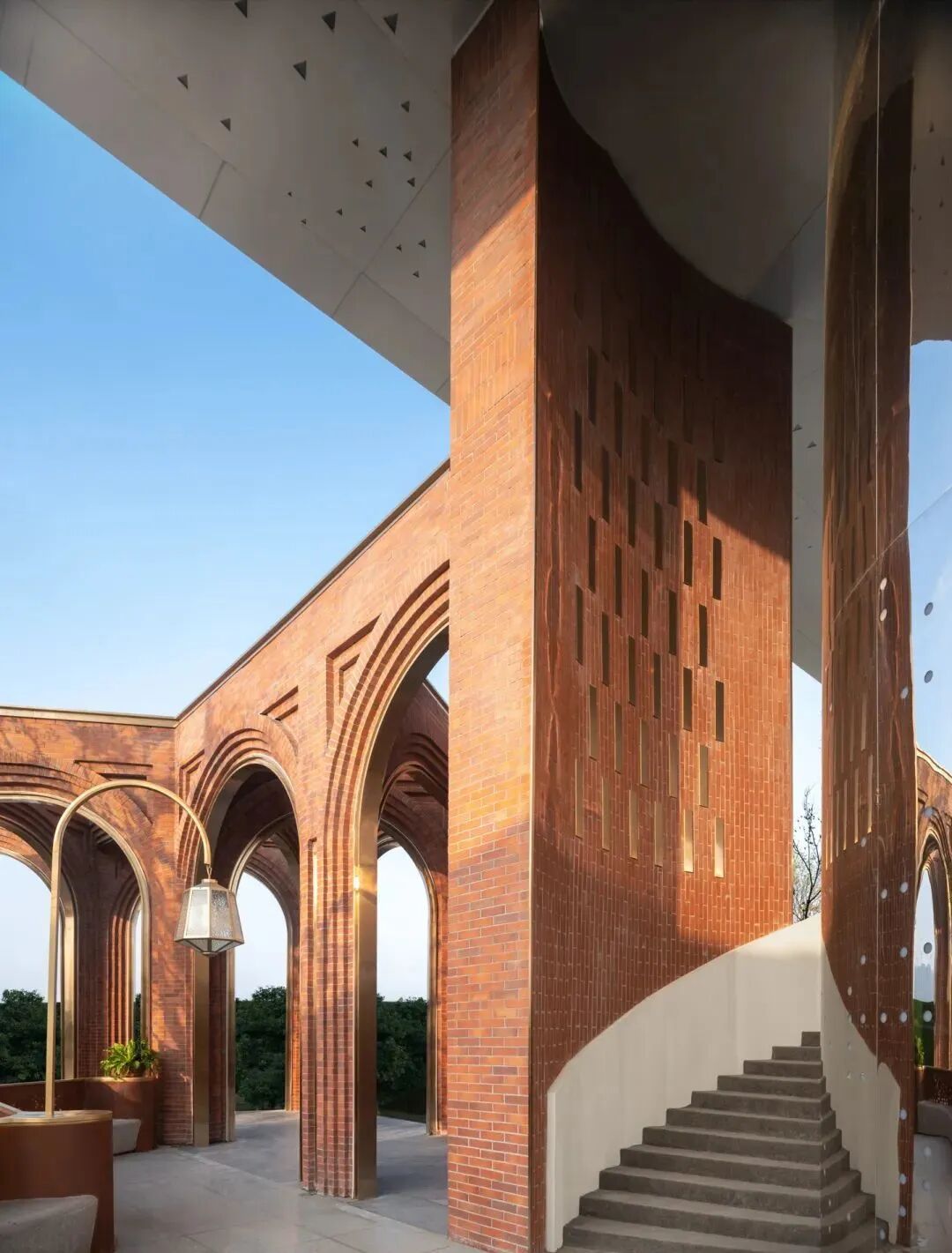 依稀间记得那个舒朗的午后,就像在一条历史的长河中流淌着,从过去走到现在,又慢慢的走向未来,叙述一段古典与现代碰撞故事...拱形廊架串联建筑与景观空间,圆弧形把空间意向表现得更加柔和,温润中带着典雅的气息并呈现出理性之美。