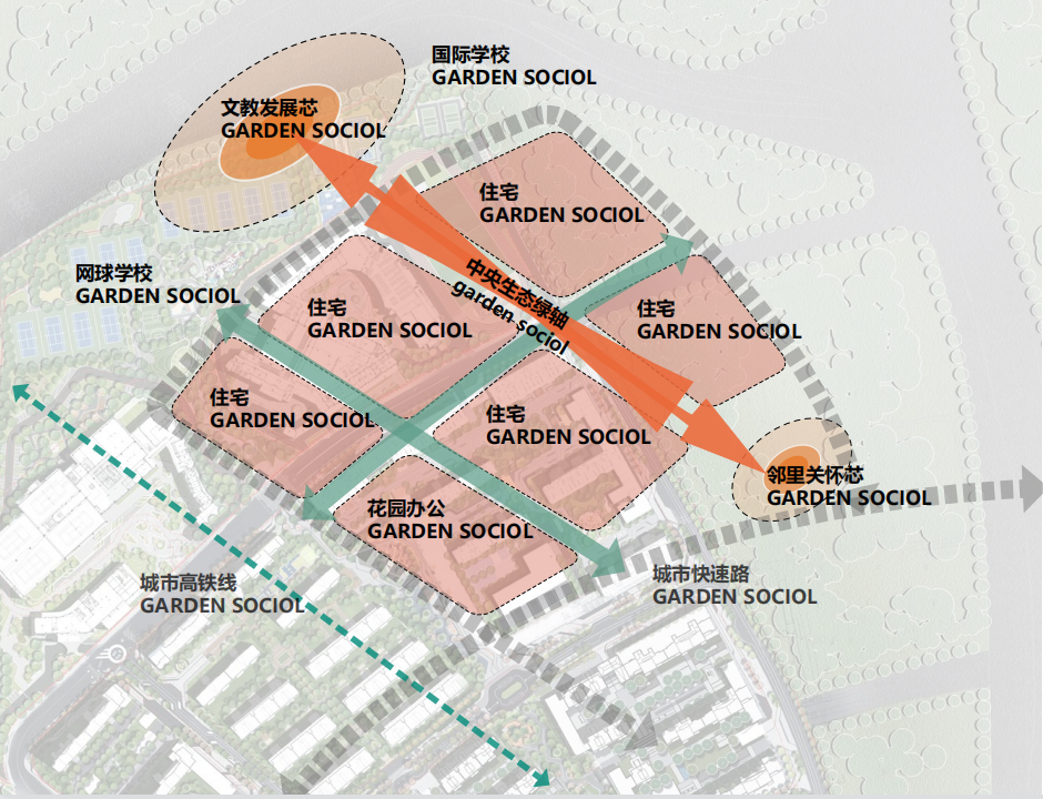整体规划以绿轴为中心,结合慢行系统打造生态低碳社区,塑造整个中法新城片区的室外活力中心,营造复合化的宜居形态;整合金地优质资源,营造公园“里”的乐活空间与开放的邻里氛围,形成健康多元化的生活圈。