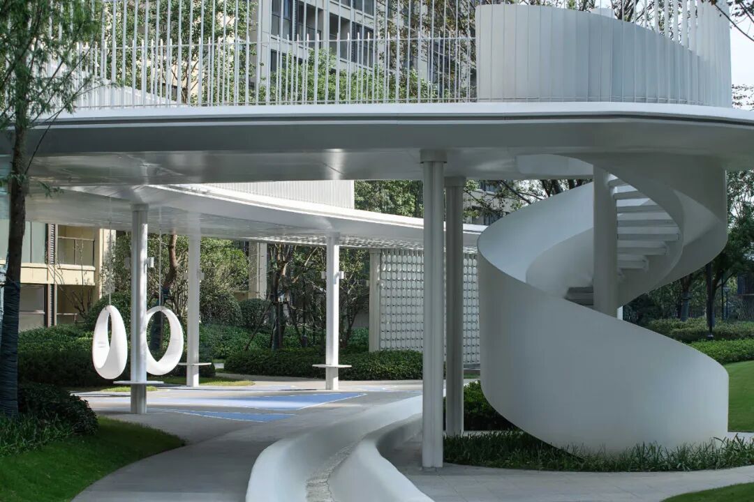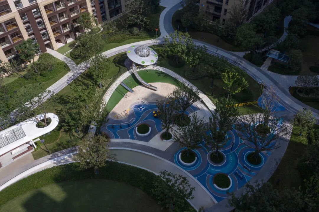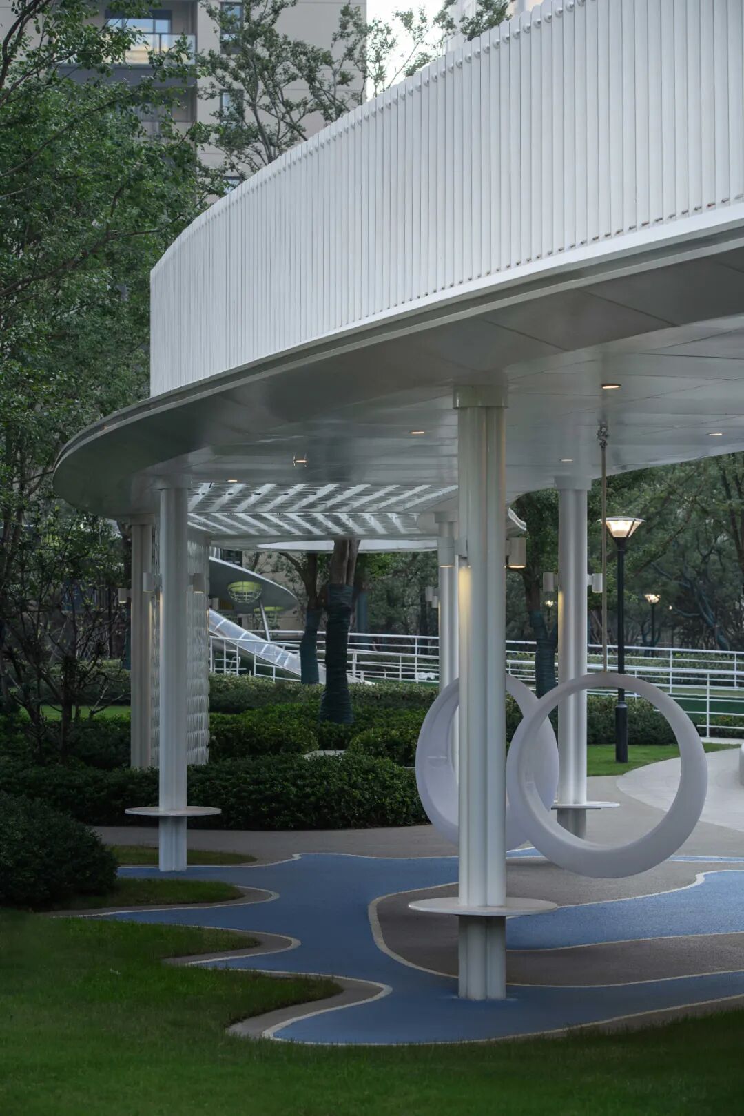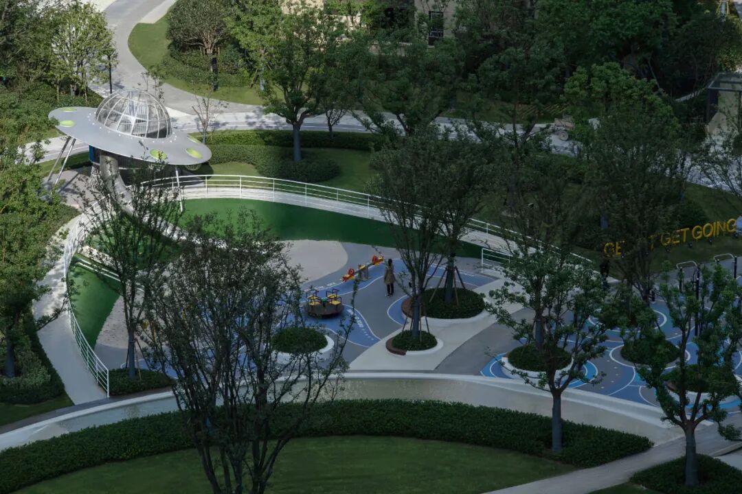 The starry sky park centered on UFO is equipped with a variety of amusement facilities. Children can spend an afternoon of fun here. A terrazzo water ring is set up around the central lawn, so that older children who don't need supervision can come to the lawn and have fun.