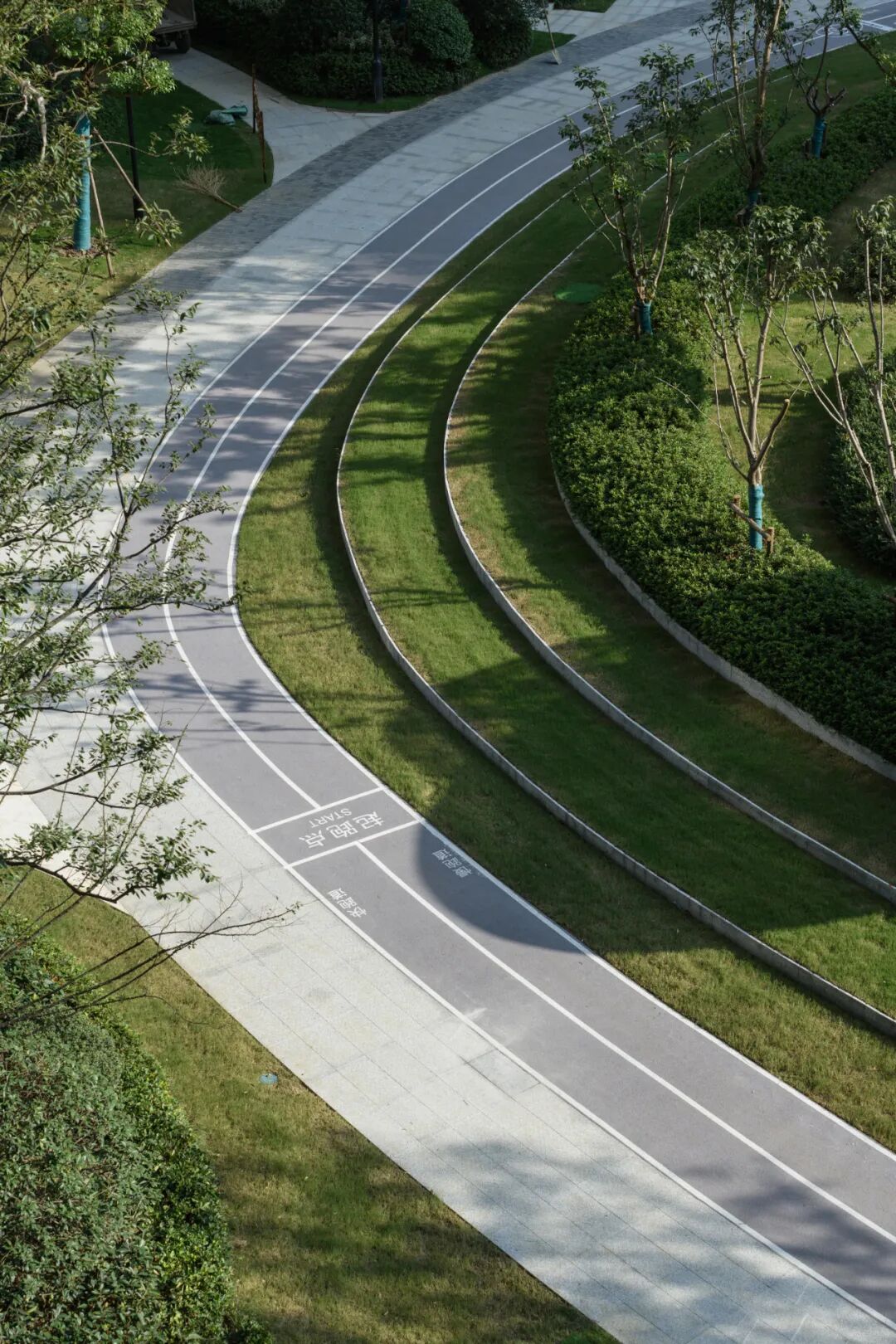 二环的概念是设计了两个景观环道。第一条环是结合消防路的归家环。归家环负责串联五个不同植物属性的邻里花园。同时融入慢跑道功能,两侧设置高大乔木形成林荫路,并配有起跑准备区和沿路的休息停留空间。第二条环以中心公园尺度大草坪界定边界。将之定义为全龄活动环。也是项目最核心的活动区域,不同年龄段的人群在这里都能找到属于他们的公园时光。
