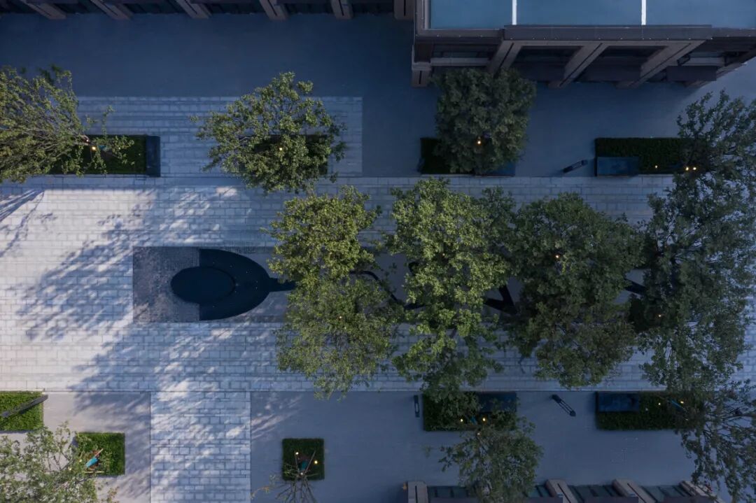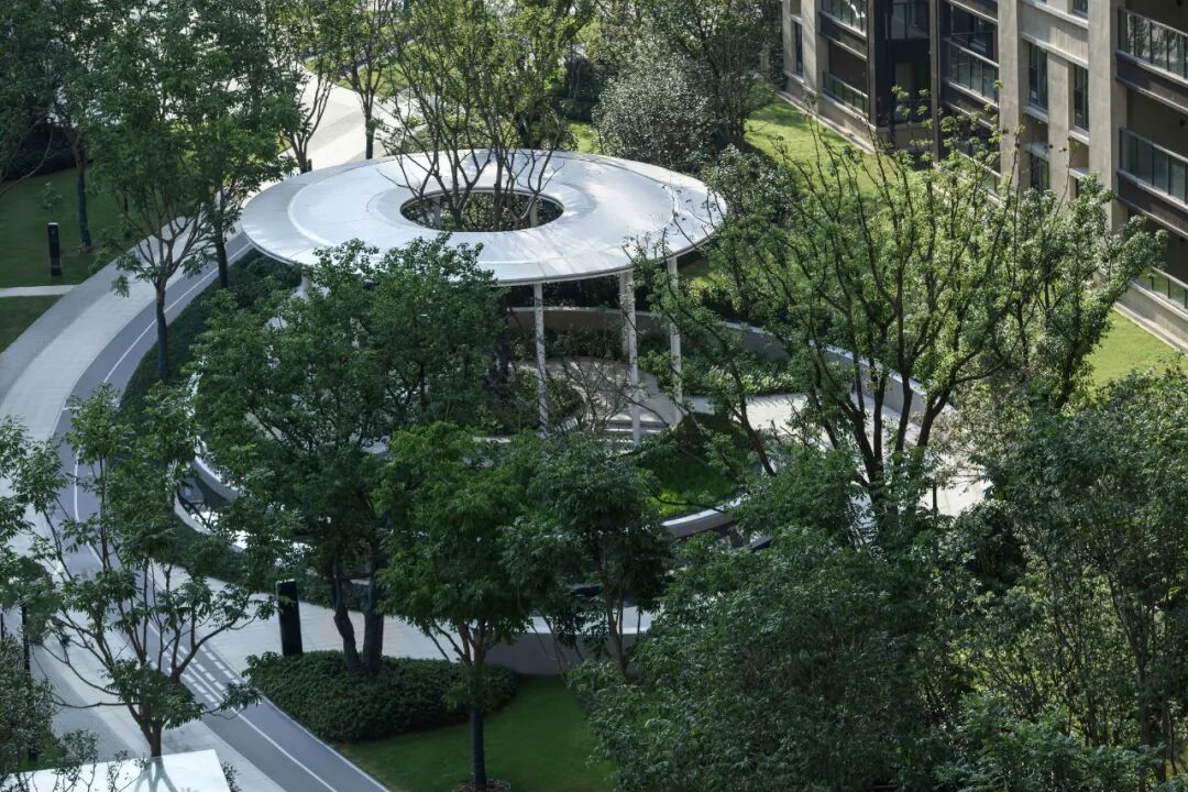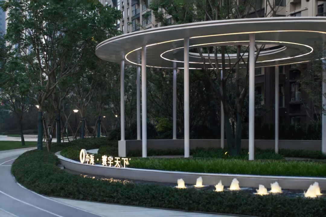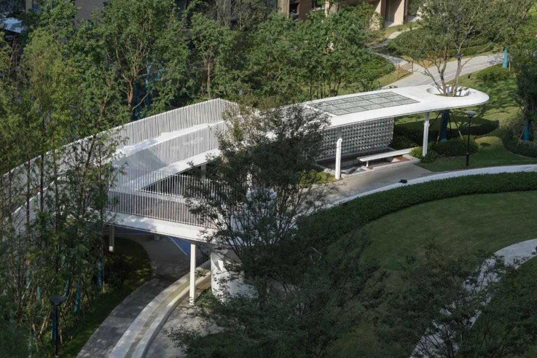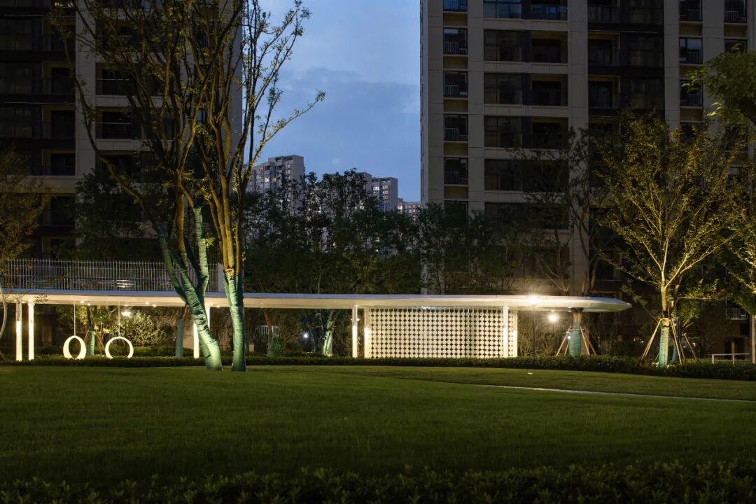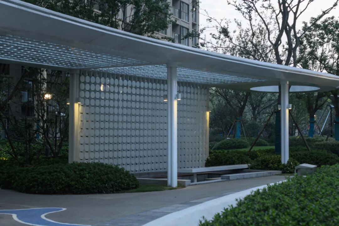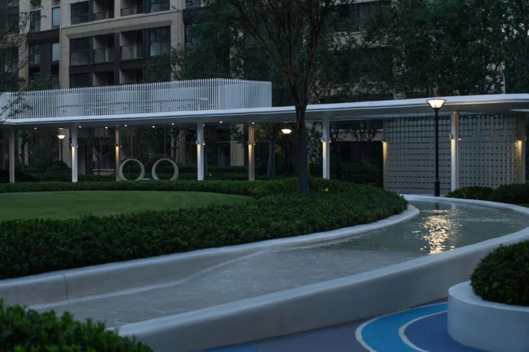 The designer hopes to bring a micro-vacation space experience at the entrance of the community, creating a homecoming experience with five senses through elements such as waterscape, aromatic plants, and the pavilions. People can relax when they return, or take a rest under the pavilion.