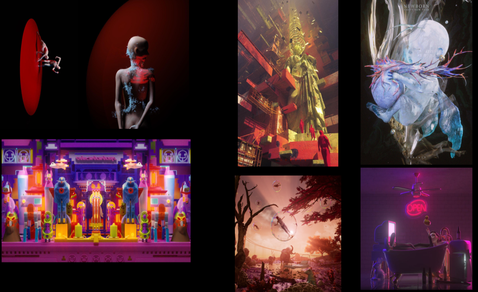 在这里,你的创作是不受限的,你可以自由地表达你的所思所想!但同时我们也为你准备了一些创作方向参考,你可以以先锋艺术家宋婷、sheepmaomao、任庆奇的系列作品作为主题参考,来进行你的数字艺术作品创作。