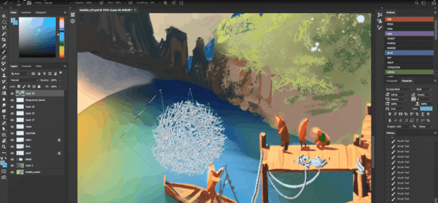 如果你第一眼看到Kemane Bâ的作品时,会忍不住沉迷于他光影梦幻,他绘制的草丛、苔藓、灌木等植物通透温暖。云雾缭绕的大气环境,瀑布、溪流等各种形式的表现,让人一见倾心。质感真实,细节出众。