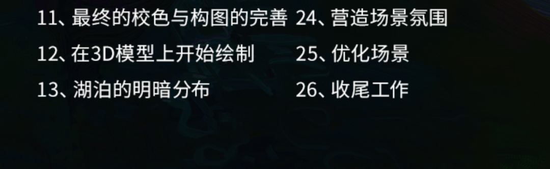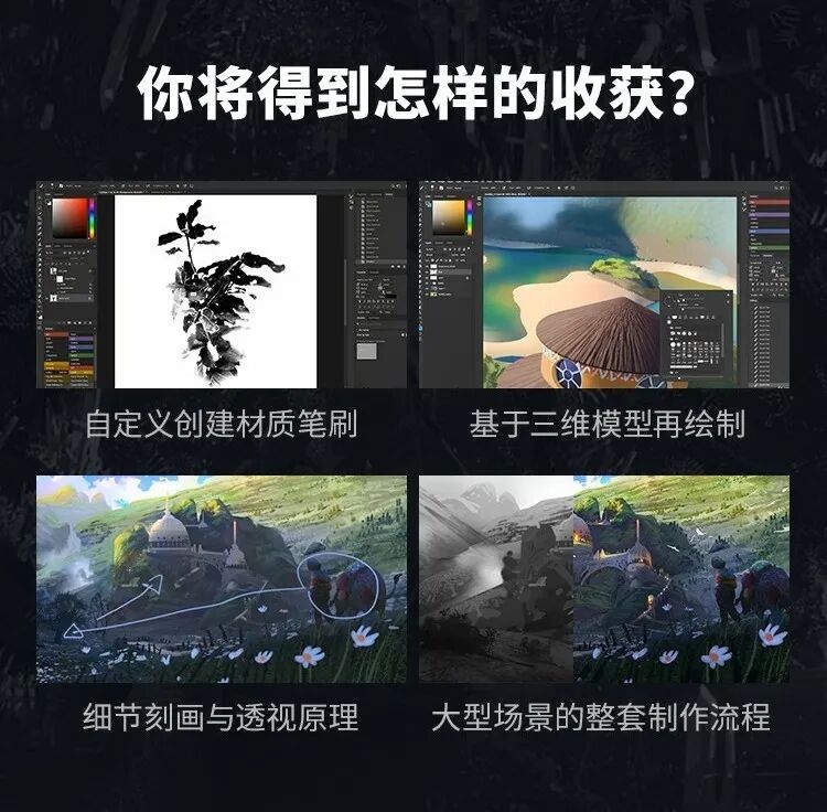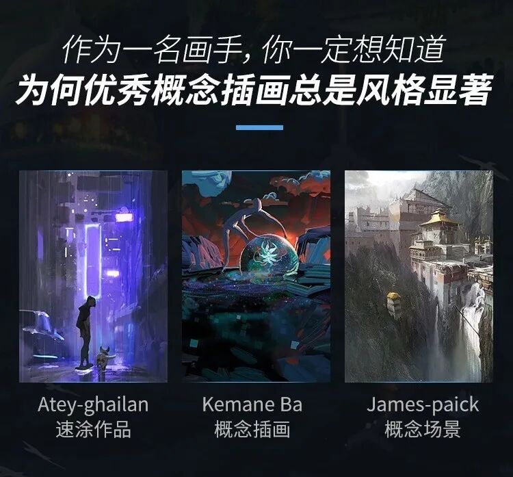 这套课程的案例制作从前期Photoshop笔刷定制到后期大型场景的制作全流程,大环境的透视、人物与环境的结合...精益求精。将复杂的问题简单化,在课上展示大型影视游戏气氛案例、优秀的概念场景,看他的课程宛如欣赏电影一般享受。