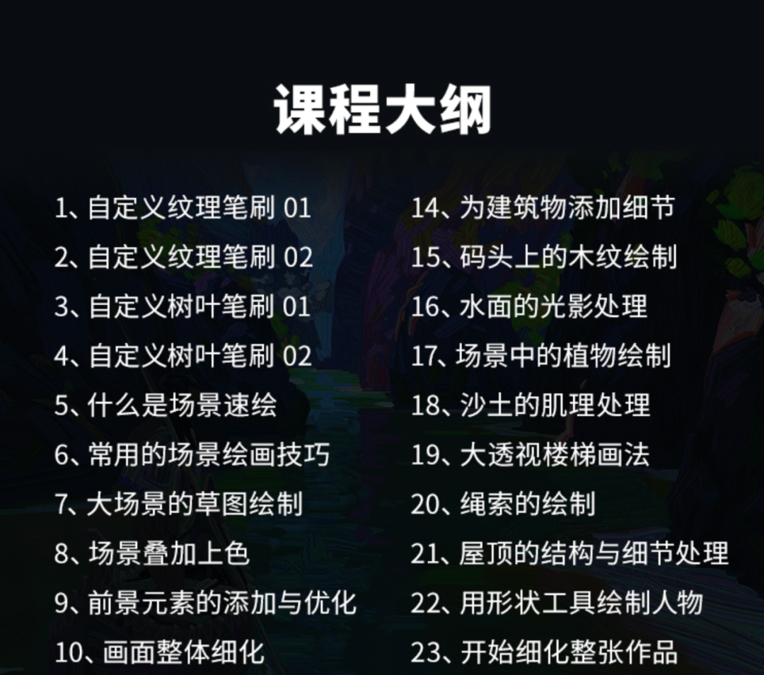 一套全流程概念场景精品教程包含N种核心技能。我身边从业多年的老手画师看完后,也忍不住夸赞,课程太合胃口了。要从他的课程里挑出闪光点或者特色,这有点难度,实在是太多了,目光所至皆是扎实。