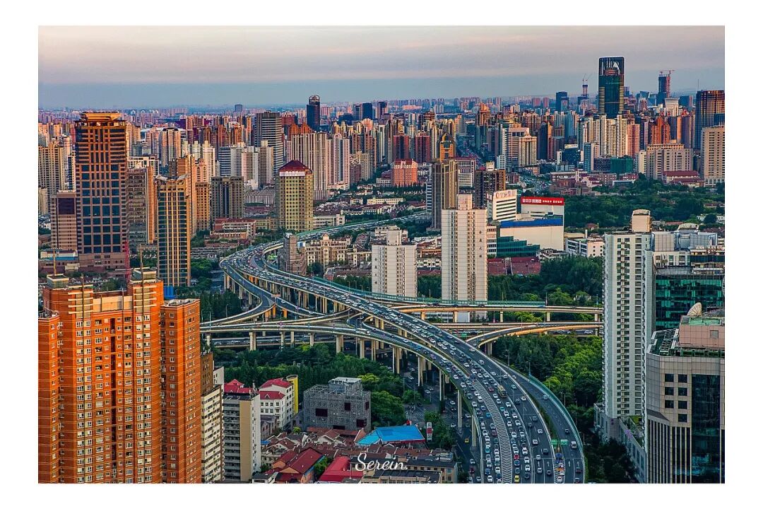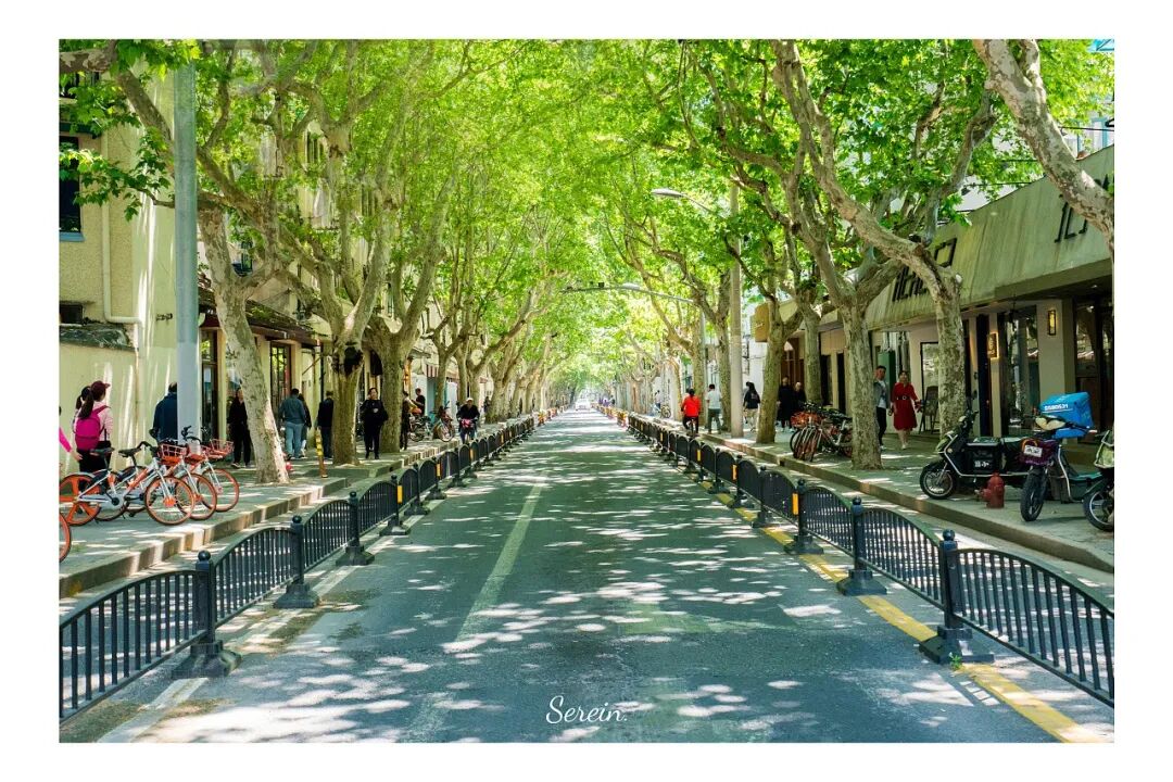 你能看见时髦摩登CBD,也能看见市井生活烟火气。左边是高楼大厦高耸入云,右边是老街梧桐和咖啡香气。