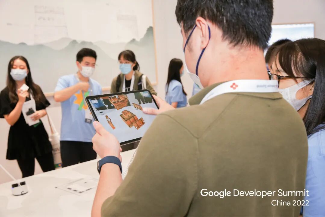 当然了,现场还有数个展台可以进行技术与产品的趣味互动体验,而对于普通用户来说,Google开发者大会也颇有亮点,我们在这里体验了隐私和生产力更强的Android13,也在“见微知筑”和“观妙悦色”展台体验到了艺术和科技的融合。
