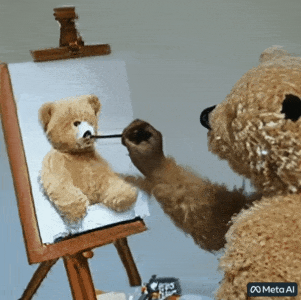 超现实:A teddy bear painting a portrait(一只泰迪熊在画自画像)