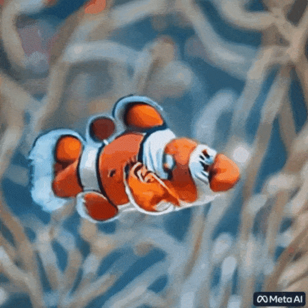 现实:Clown fish swimming through the coral reef(小丑鱼在珊瑚礁中游泳)