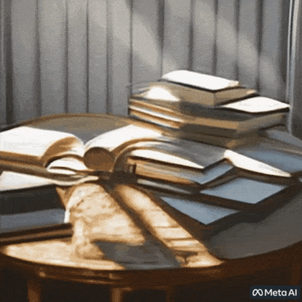 风格化:There is a table by a window with sunlight streaming through illuminating a pile of books(窗边有一张桌子,阳光照射进来,照亮了一堆书)