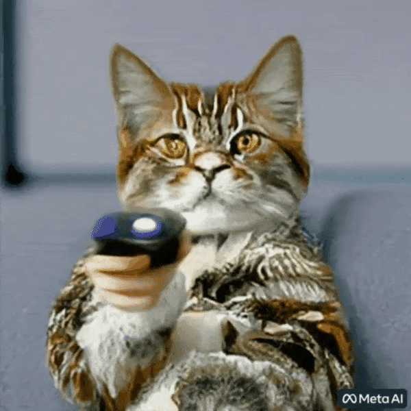 超现实:Cat watching TV with a remote in hand(手持遥控器的猫在看电视)